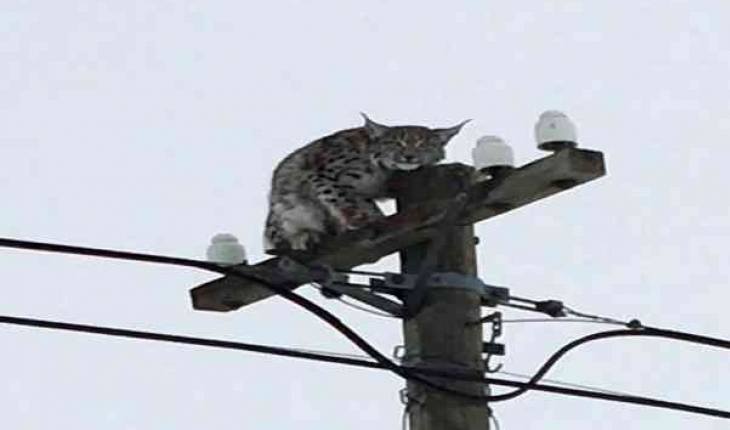 Sivas'ın Hafik ilçesinde köpeklerden korkan vaşak, telefon direğine tırmandı. Vaşağın, direğin tepesinde beklediği anlar kameraya yansısı.