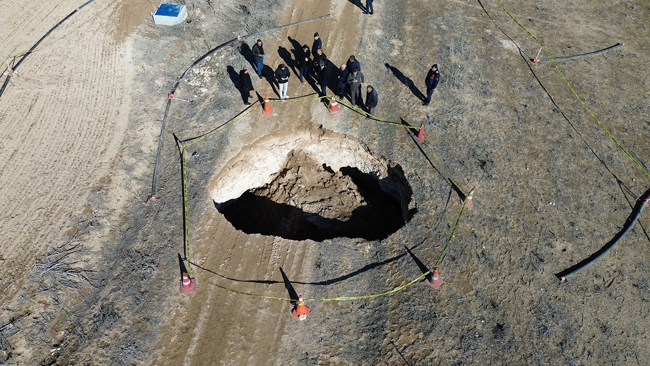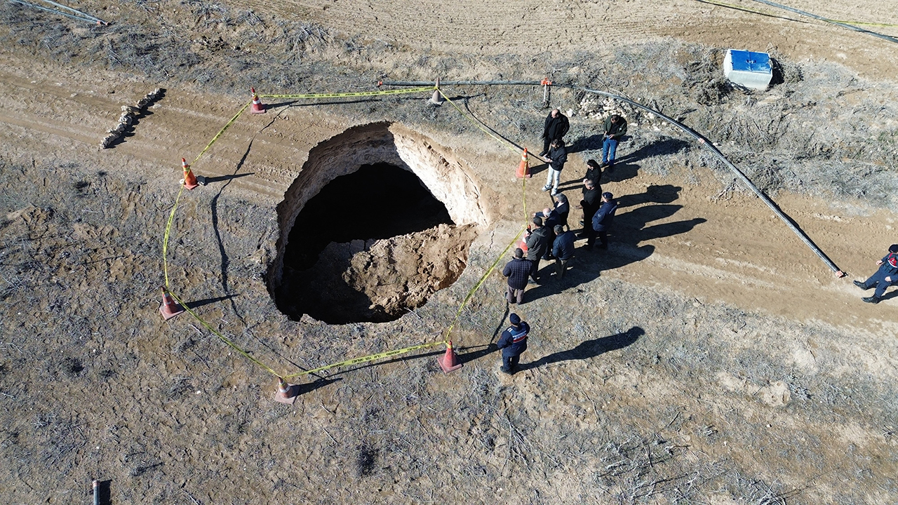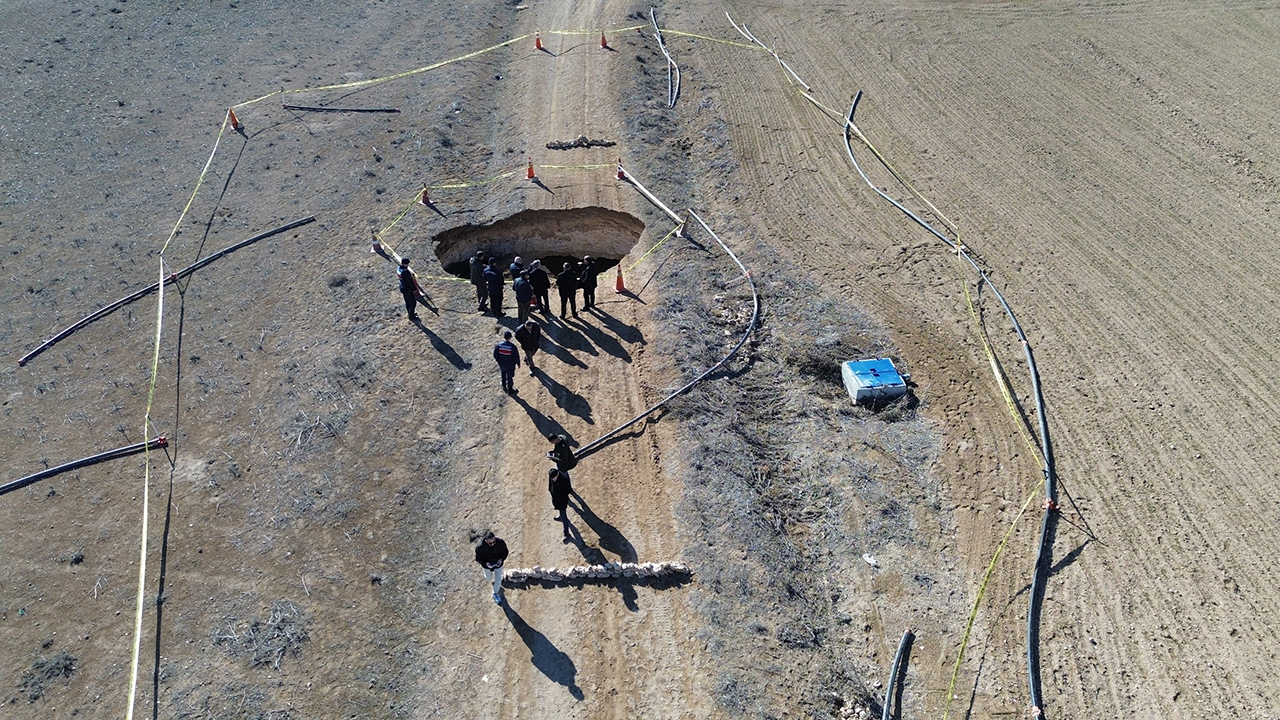 Aksaray'ın Eskil ilçesine oluşan obruk dron ile havadan görüntülenirken, olay yerine İl Afet Acil Durum (AFAD) Müdürlüğü ekipleri gönderilerek, jandarma ekiplerince güvenlik önlemleri alındı. Olay yerine gelerek incelemelerde bulunan Eskil İlçe Belediye Başkanı Mustafa Zavlak, "Önceleri Konya Karapınar ve Konya Ereğli bölgelerinde obruk oluşumu meydana gelirdi. Artık Tuz Gölü Havzasına gelmeye başladı" dedi.