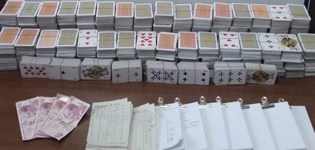 Baskında ele geçirilen oyun kağıtları ile para ve yazboza el konulurken kumar oynayan 6 kişiye kişi başı bin 336 lira olmak üzere 8 bin 016 lira ceza yazıldı.