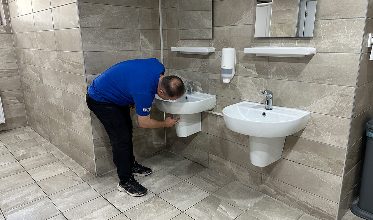 Çalışma kapsamında mevcut manuel musluklar, temassız kullanım sağlayan ve suyun gereksiz akışını önleyen fotoselli musluklarla değiştiriliyor.