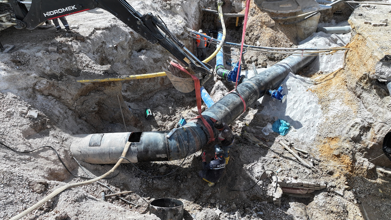 Konya Büyükşehir Belediyesi KOSKİ Genel Müdürlüğü, KONYARAY Banliyö Hattı güzergahında, Hacıkaymak, Işıklar, Nişantaşı ve Fatih mahallelerindeki toplam 11 bin 195 aboneyi ilgilendiren 800 milimetrelik çelik içme suyu hattını sorunsuz bir şekilde deplase etti.