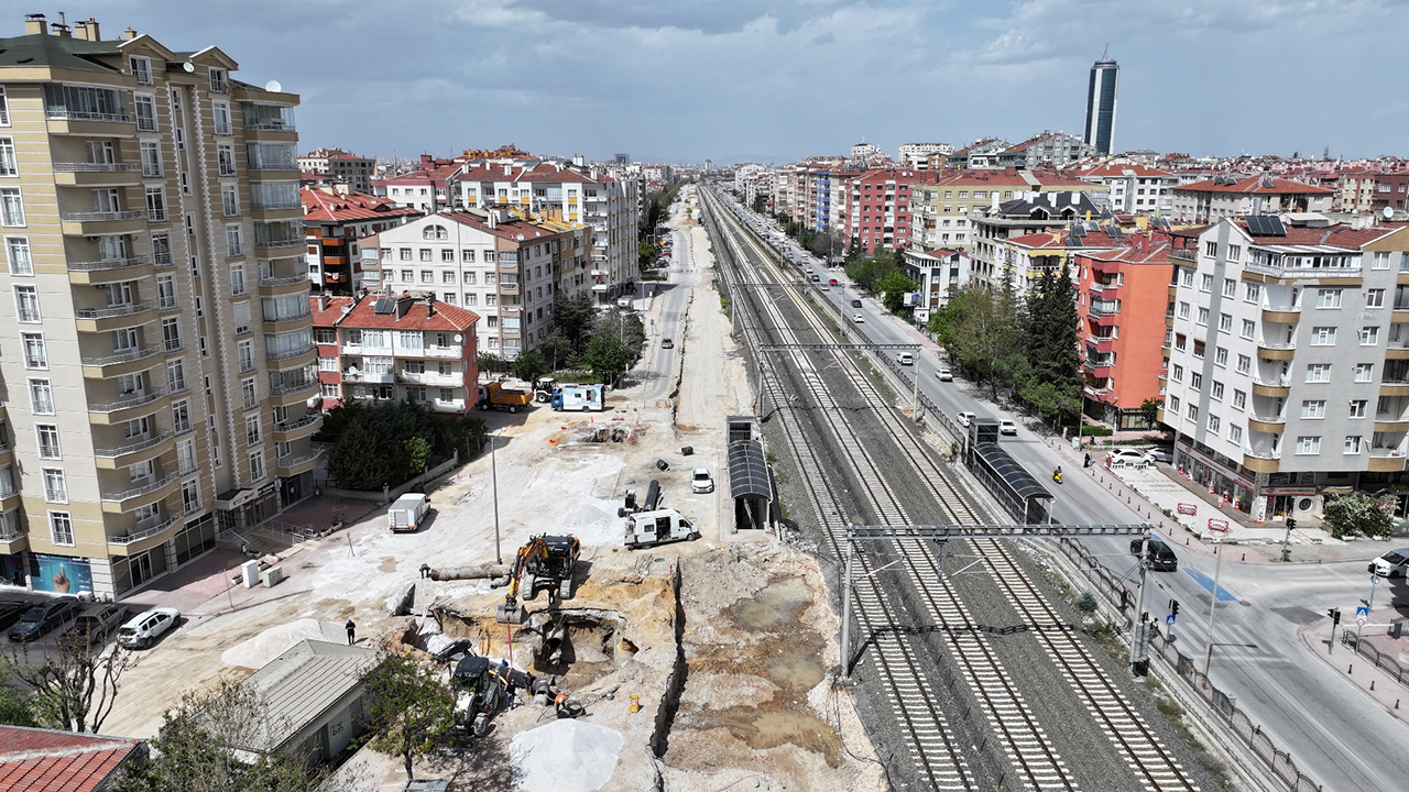 Konya Büyükşehir Belediyesi KOSKİ Genel Müdürlüğü, Ulaştırma ve Altyapı Bakanlığı ile Konya Büyükşehir Belediyesi tarafından çalışmaları sürdürülen KONYARAY Banliyö Hattı güzergahında deplase çalışması gerçekleştirdi.