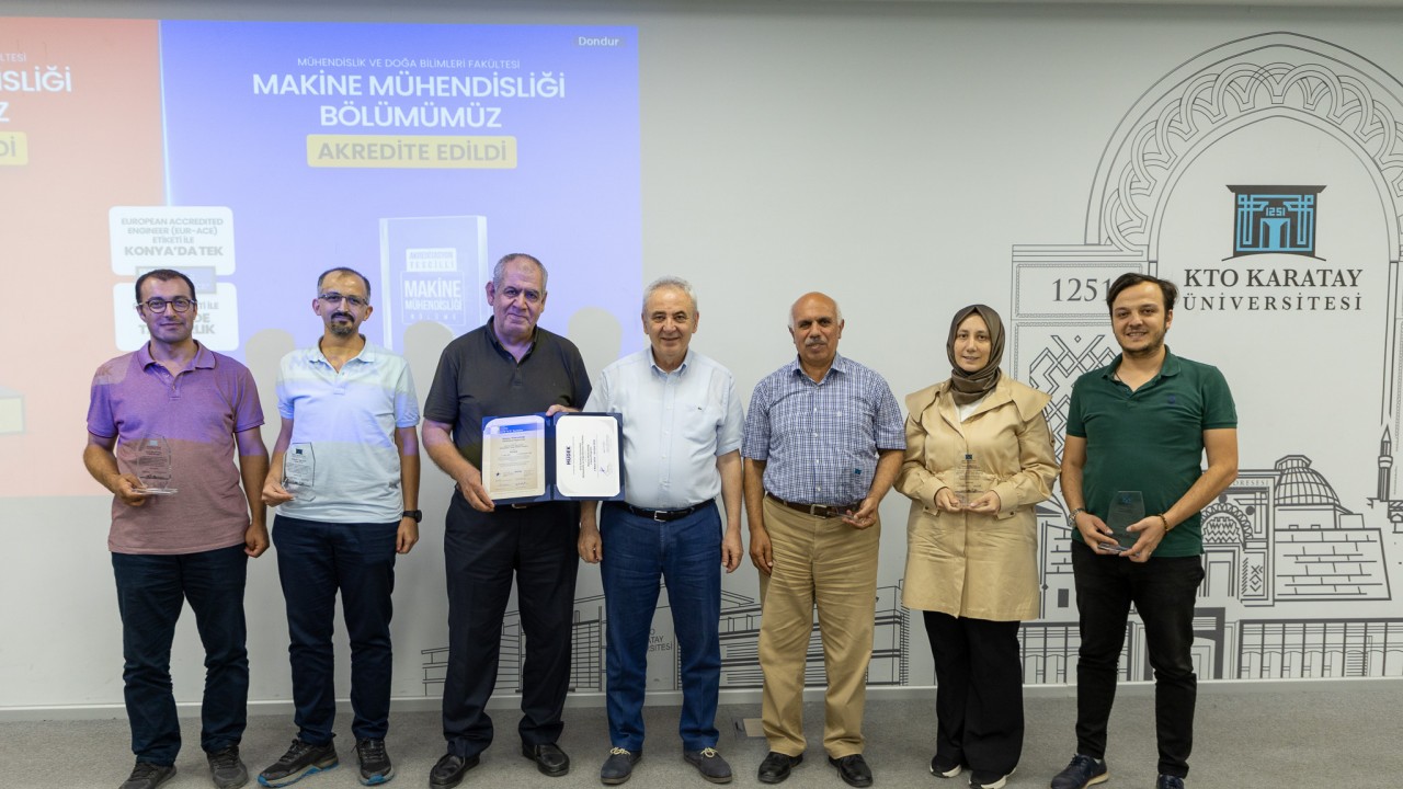 KTO Karatay Üniversitesi’nde düzenlenen “İnşaat Mühendisliği ve Makine Mühendisliği Bölümleri Akreditasyon Ödül Töreni"ne, KTO Karatay Üniversitesi Rektörü Prof. Dr. Fevzi Rifat Ortaç, Rektör Yardımcısı Prof. Dr. Mehmet Çelik, Mühendislik ve Doğa Bilimleri Fakültesi Dekanı Prof. Dr. Faruk Ünsaçar, İnşaat Mühendisliği Bölüm Başkanı Prof. Dr. Mehmet Faik Sevimli, Makine Mühendisliği Bölüm Başkanı Dr. Öğr. Üyesi Remzi Şahin ve akademisyenler katıldı.