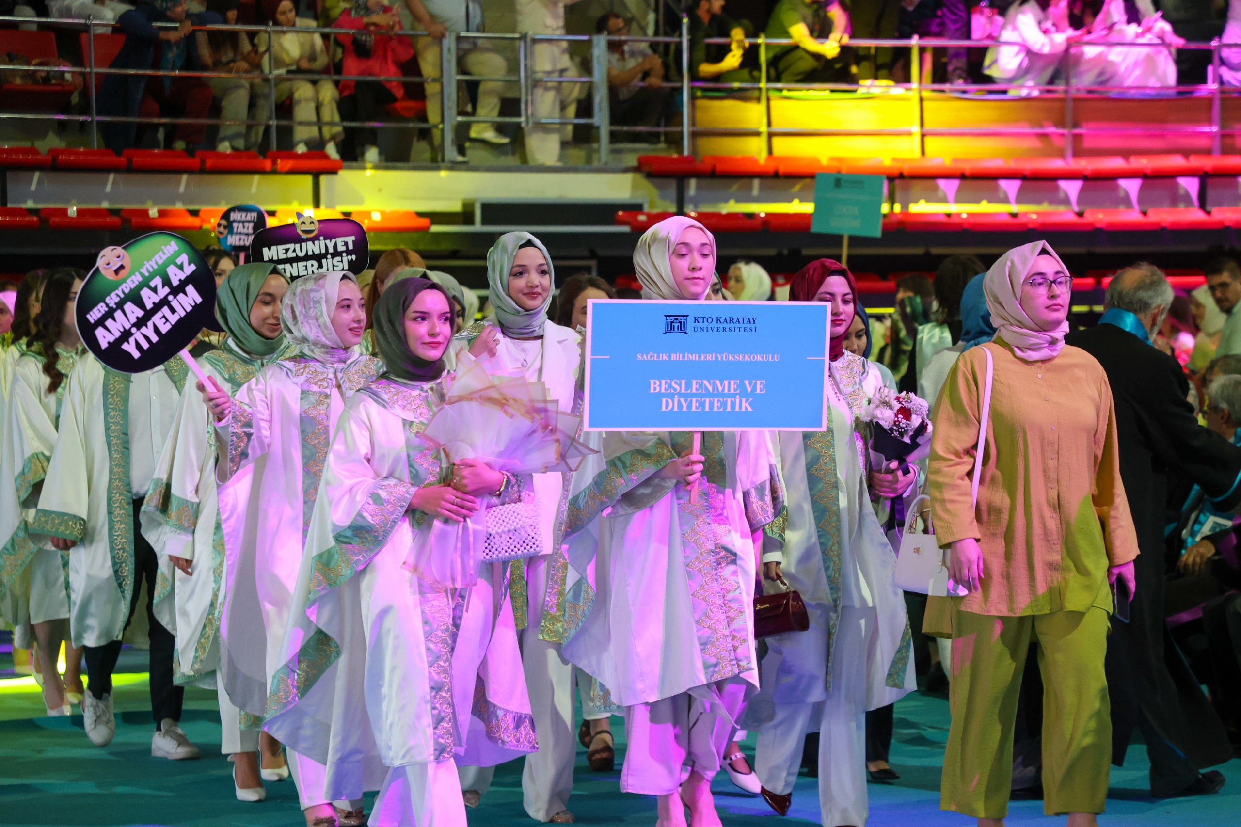 Konya Ticaret Odası (KTO) Karatay Üniversitesi, Karatay Spor ve Kongre Merkezinde düzenlenen görkemli mezuniyet töreni ile 13. dönem mezunlarını uğurladı. Lisans ve ön lisans eğitimlerini başarıyla tamamlayan 1.680 öğrencinin mezun olduğu törene katılan aileler ve akademisyenler; yeni bir hayata adım atan KTO Karataylı mezunların gurur, heyecan ve sevincine ortak oldu.