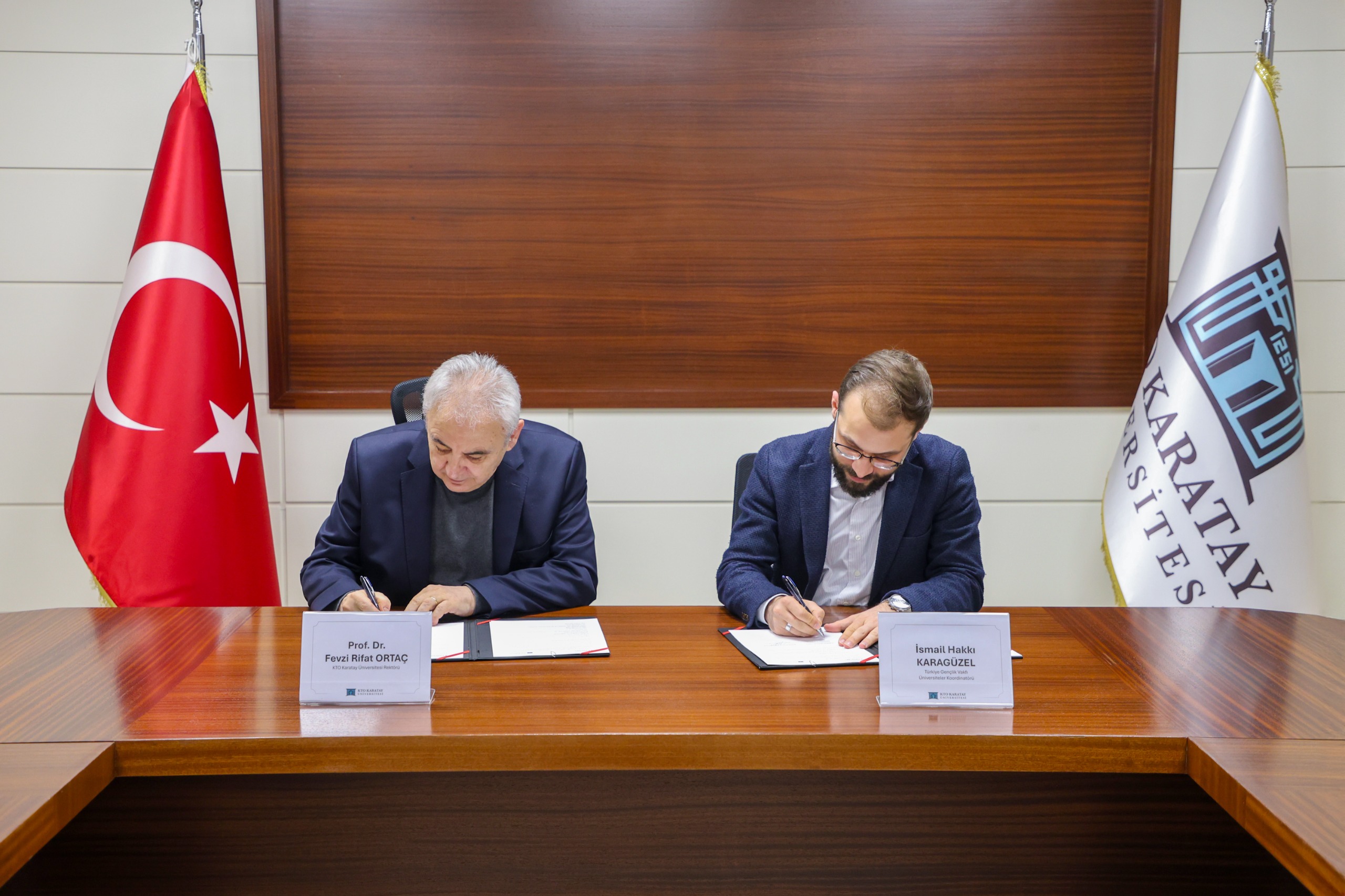 KTO Karatay Üniversitesi ile TÜGVA arasında İhtisas Akademisi İş Birliği Protokolü imzalandı. Öğrencilere akademik eğitimler sunulması, sosyal bilinçlerinin geliştirilmesi, disiplinler arası etkileşimin artırılması ve nitelikli akademik çalışmalarla literatüre katkı sağlanması hedefiyle imzalanan protokol törenine, KTO Karatay Üniversitesi Rektörü Prof. Dr. Fevzi Rifat Ortaç ve TÜGVA Üniversiteler Koordinatörü İsmail Hakkı Karagüzel katıldı.