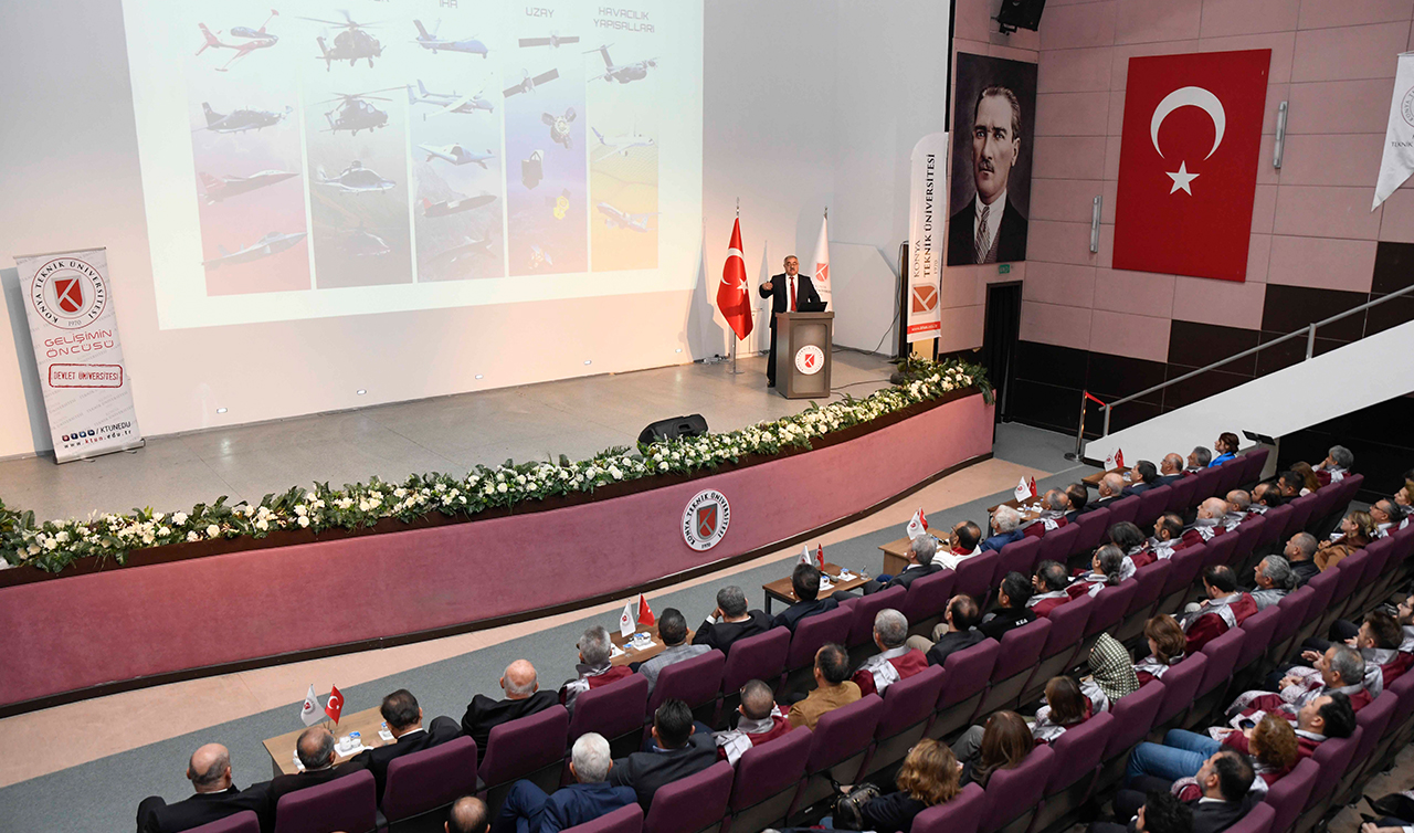 Daha sonra kürsüye gelerek konuşan KTÜN Rektörü Prof. Dr. Çelik, ‘Türkiye Yüzyılı’ hedefi doğrultusunda daha çok çalışacaklarını ve daha çok üreteceklerini vurguladı. Üniversite hakkında ve yürütülen akademik çalışmalar konusunda bilgiler veren Rektör Çelik, 1970’lere dayanan akademik geçmişiyle köklü bir birikime sahip KTÜN’ün geleceğe umutla yürüyen genç bilim insanları yetiştirdiklerini belirtti. Özellikle savunma sanayinde yaptıkları çalışmalarla gelişimin öncüsü rolünü başarıyla sürdürdüklerini ifade eden Prof. Dr. Çelik, 2024-2025 akademik yılının tüm akademi camiasına ve KTÜN’e hayırlı olmasını diledi. Vali Akın: ‘Ktün, Bilimin Gelişimi Ve Öncüsü Konumunda’ Rektör Çelik’in ardından kürsüye gelen Konya Valisi İbrahim Akın, konuşmasında KTÜN’ün akademideki gösterdiği başarılara dikkat çekti. “KTÜN, bilimi geliştirmekle kalmayıp aynı zamanda öncüsü de olmaktadır.” diye konuşan Vali Akın, “Bu çatının altında bulunmak, bilimsel bir idealin peşinde koşmak demektir. KTÜN, 126 üniversite arasında 11. sırada yer alarak bilimsel başarısını bir kez daha kanıtlamıştır. Bunun yanında bu yıl Adana’da düzenlenen Teknofest’te de 9 ödül alarak Konyamızı bir kez daha gururlandırmıştır.” dedi.