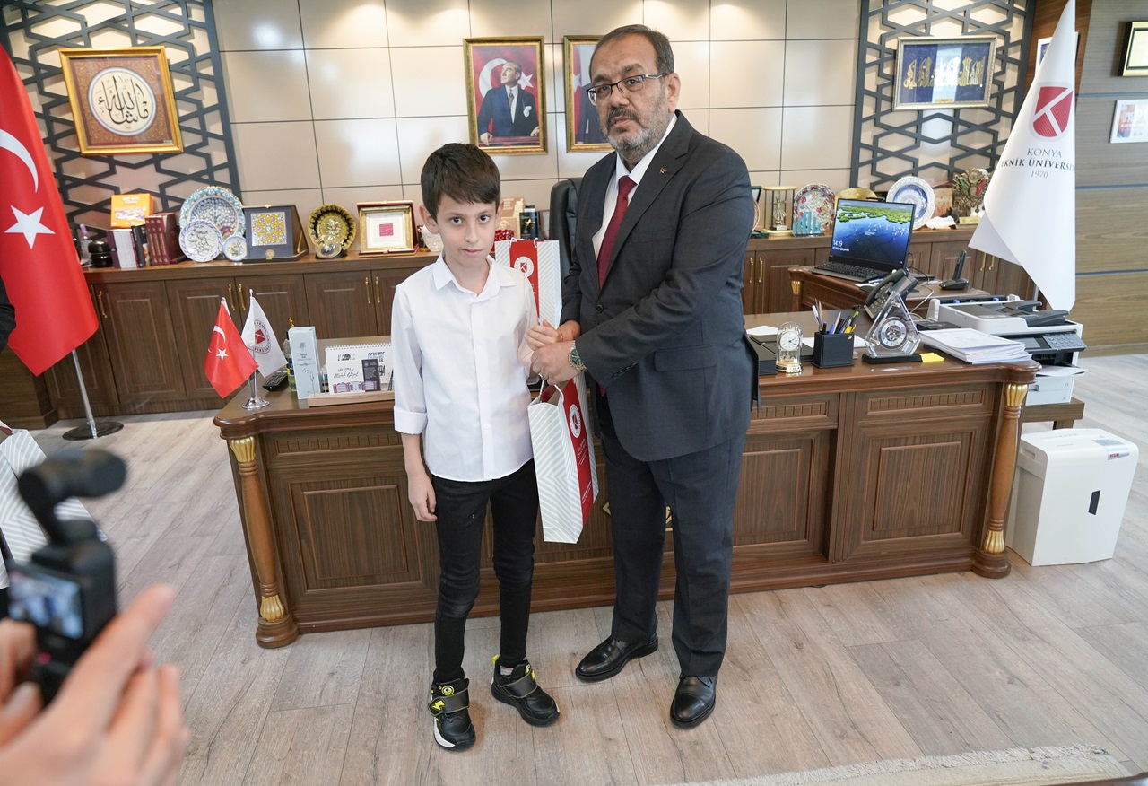 23 Nisan Ulusal Egemenlik ve Çocuk Bayramı kapsamında Konya Teknik Üniversitesi (KTÜN)’nde anlamlı bir program düzenlendi. Etkinlik çerçevesinde Rektörlük makamı, Şehit İbrahim Betin İlkokulu 4. sınıf öğrencisi Ümmü Gülsüm Uludağ’a temsili olarak devredildi. Minik öğrenci, kısa süreliğine rektörlük koltuğuna oturarak geleceğe dair hayallerini ve düşüncelerini dile getirdi.