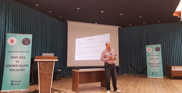 Elektrik-Elektronik Mühendisliği Bölümü Başkanı Prof. Dr. Cemil Sungur’un kısa bir açılış konuşması yapmasının ardından, Topluluk Akademik Danışmanı Doç. Dr. Murat Ceylan, Yapay Zeka konulu bir sunum gerçekleştirdi. Ceylan, sunumunda, “Yapay Zeka Nedir”, “Yapay Zekanın Tarihi Gelişimi”, “Büyük Veri (Big Data) Kavramı ve Yapay Zeka İlişkisi”, “Yapay Zeka ile Değişen Hayatlarımız”, “Uluslararası Rekabette Yapay Zekanın Yeri ve Global Ölçekte Yapay Zeka Yatırımları”, “Türkiye’den Yapay Zeka Başlıklı İş İlanı Örnekleri”, “Topluluk Bünyesinde Gerçekleştirilecek Yapay Zeka Projelerinin Tanıtılması” başlıklı konuları ele aldı.