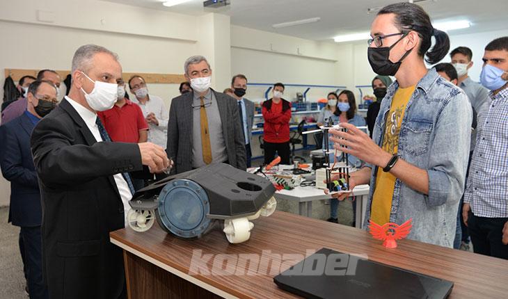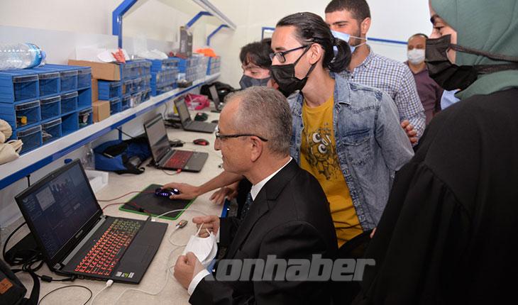 Konya Teknik Üniversitesi (KTÜN) Rektörü Prof. Dr. Babür Özçelik, TEKNOFEST’21 Yarışmalarına katılacak öğrencileri Mühendislik ve Doğa Bilimleri Fakültesinde ziyaret ederek yapılan proje ve çalışmaları yerinde inceledi. Rektör Özçelik,