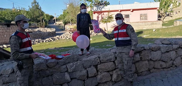 Ekipler beldeye giderek Türk bayrağı balon ve oyuncakları Hülya ve kardeşlerine hediye etti.