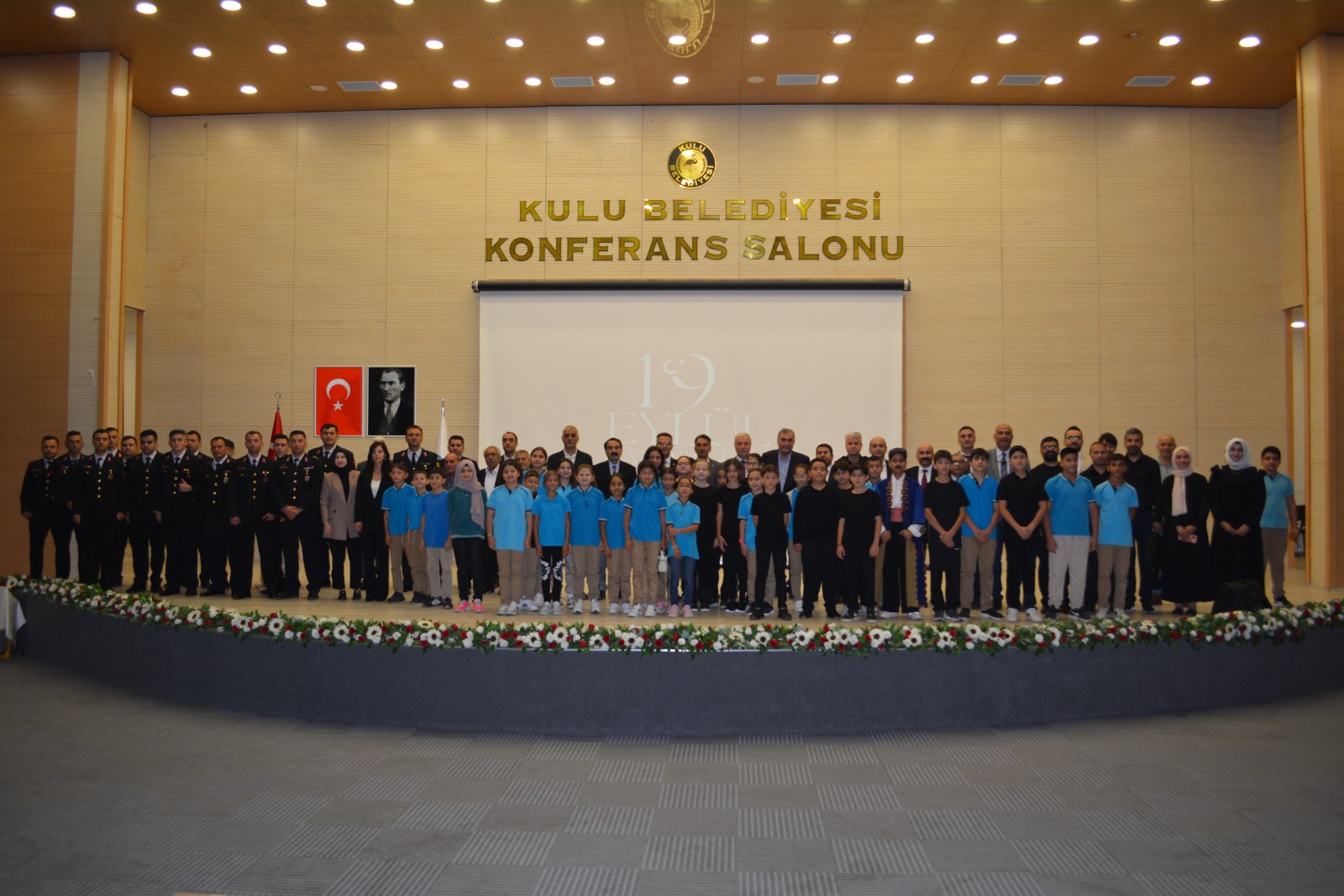 Tören ilk olarak Anıt meydanında gerçekleştirildi. Kulu Kaymakamı Ömer Faruk Canpolat ve Belediye Başkanı Abdurrahim Sertdemir tarafından Atatürk Anıtına çelenk sunuldu. Daha sonra Saygı Duruşunda bulunularak İstiklal Marşı okundu. Tören, Kulu Belediyesi Kültür Merkezi konferans salonunda düzenlenen etkinliklerle devam etti.