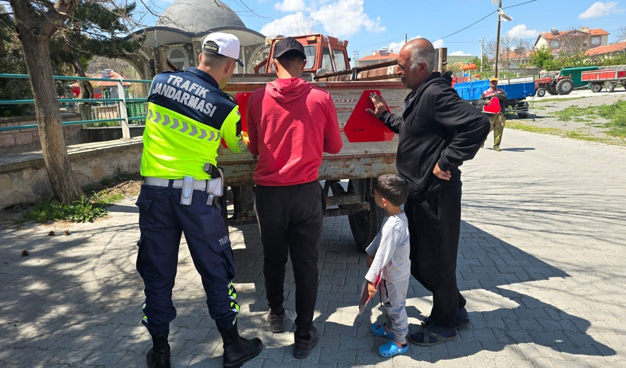 Konya'nın Kulu ilçesinde jandarma ekipleri tarafından çiftçilere reflektör dağıtılarak römorklara monte edildi.
