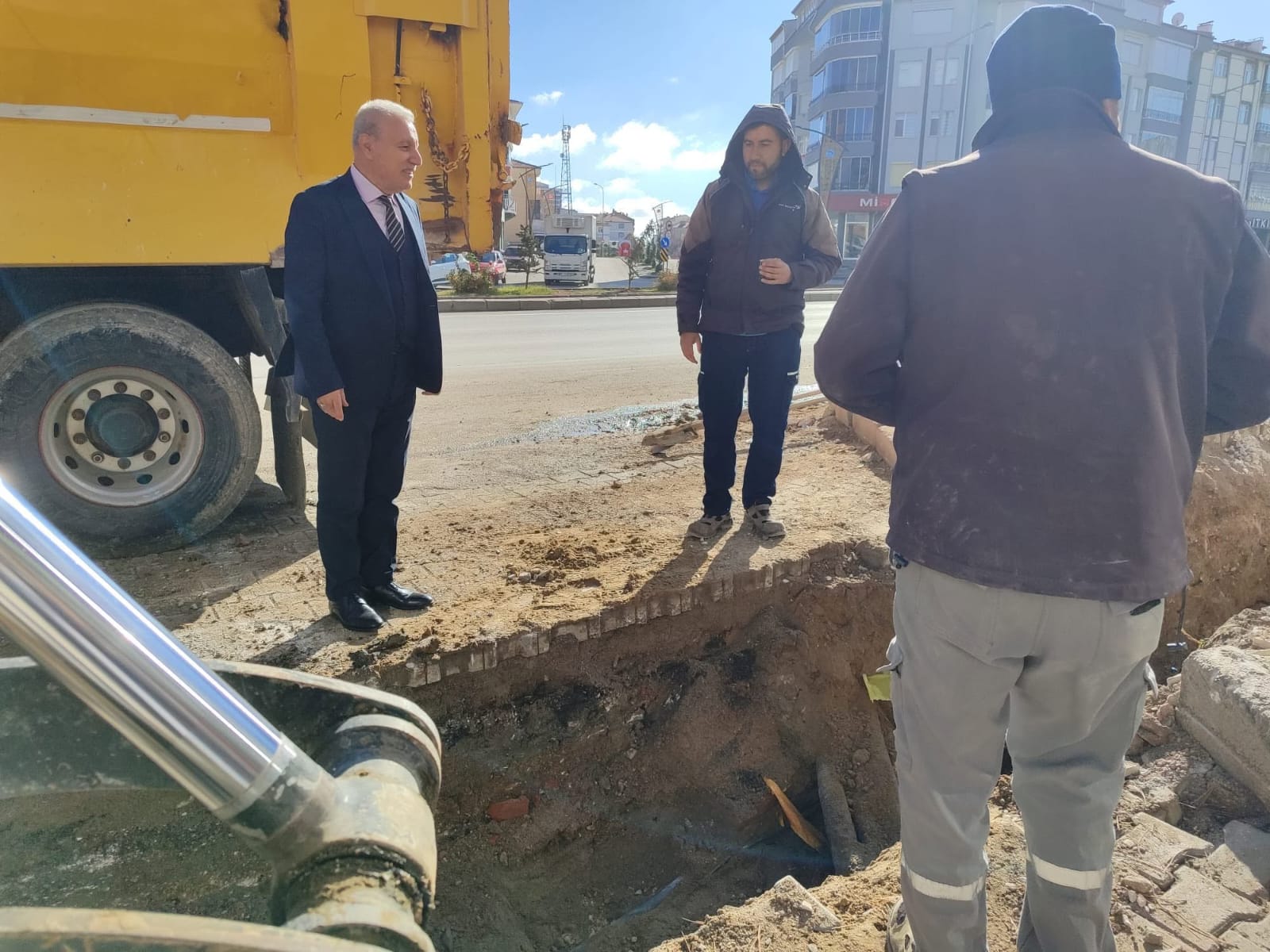 Kulu Belediye Başkanı Abdurrahim Sertdemir, yenilenen içme suyu hat çalışanlarını yerinde inceledi.