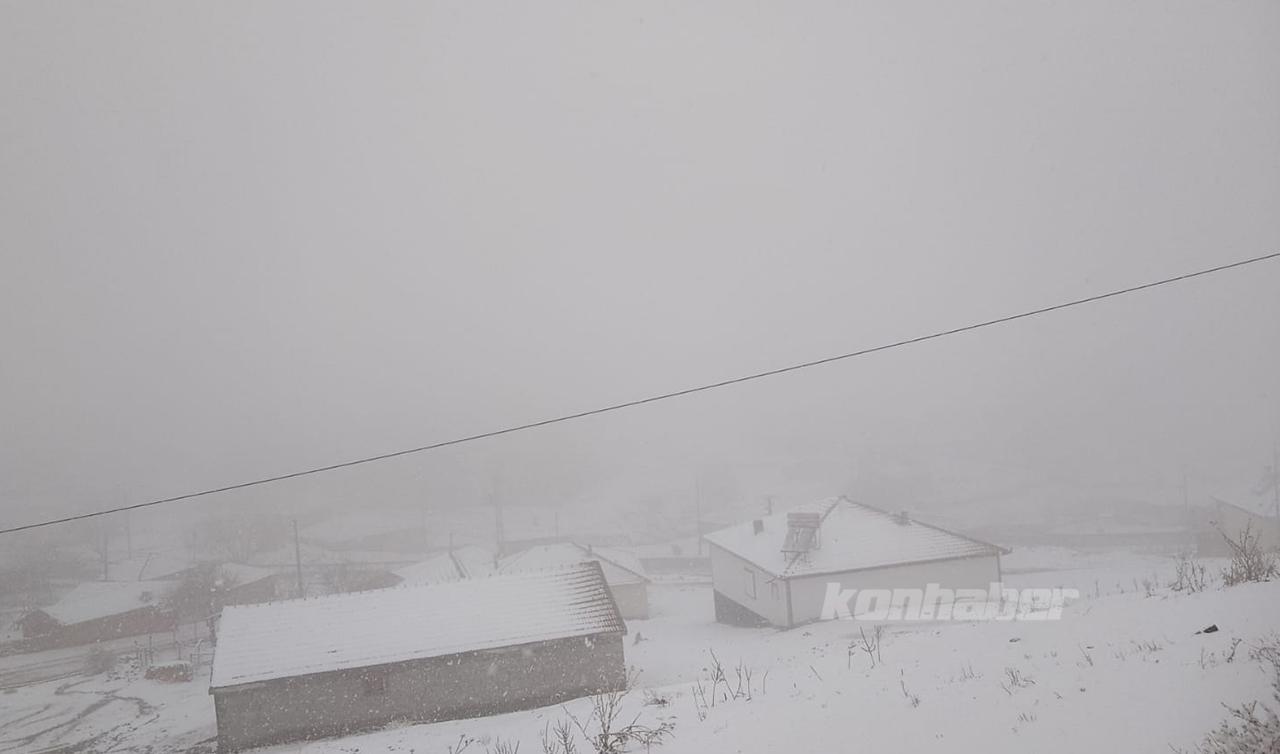 Konya'nın Kulu ilçesinde ikindi saatlerinde başlayan kar yağışı yüksek kesimlerini beyaza bürüdü.