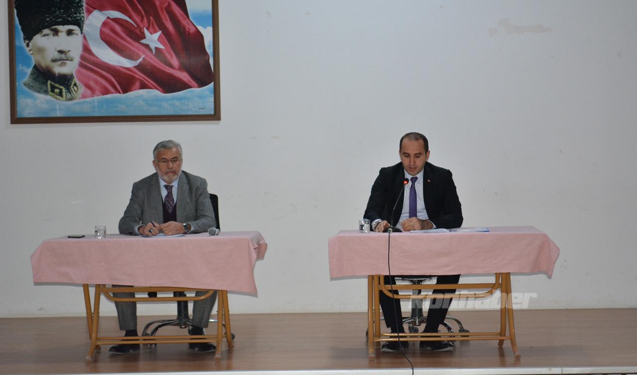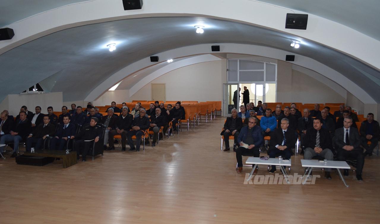 Kulu İlçe Milli Eğitim Müdürlüğü konferans salonunda düzenlenen toplantıya, Kulu Kaymakamı Ramazan Polat, Belediye Başkanı Murat Ünver, kurum amirleri ve 46 mahalle muhtarı katıldı.