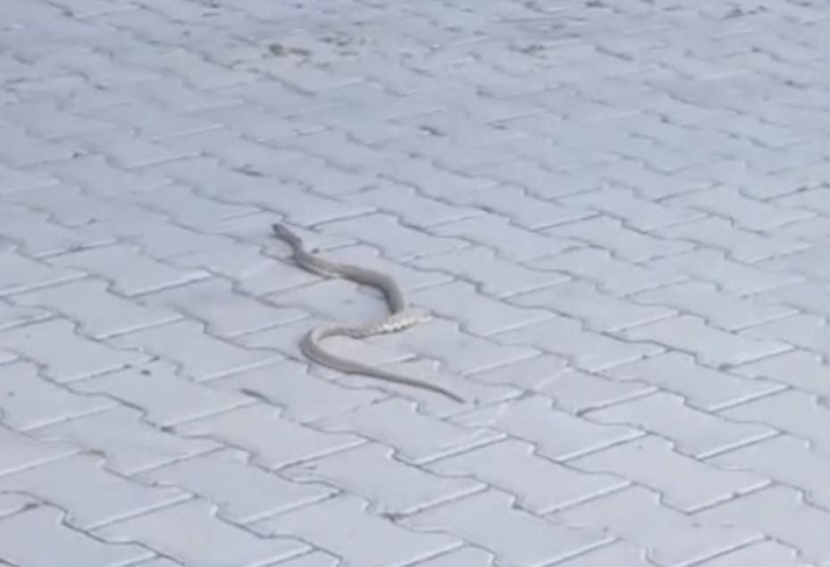 Konya’nın Kulu ilçesinde sokak ortasında görülen yaklaşık 1,5 metre uzunluğundaki yılan, vatandaşın cep telefonu kamerasına yansıdı.