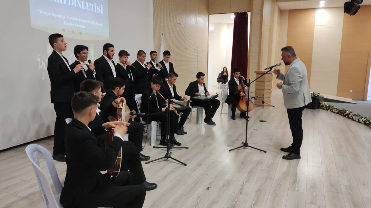 Kulu Belediyesi, Kültür Merkezi Konferans Salonunda, Konya Karatay Anadolu İmam Hatip Lisesi Musiki Korosu öğrenci grubu ve Dini Musiki Öğretmeni Fatih Emre Arıcı koordinatörlüğünde ki “Musiki Dinletisi” programı büyük ilgi gördü.