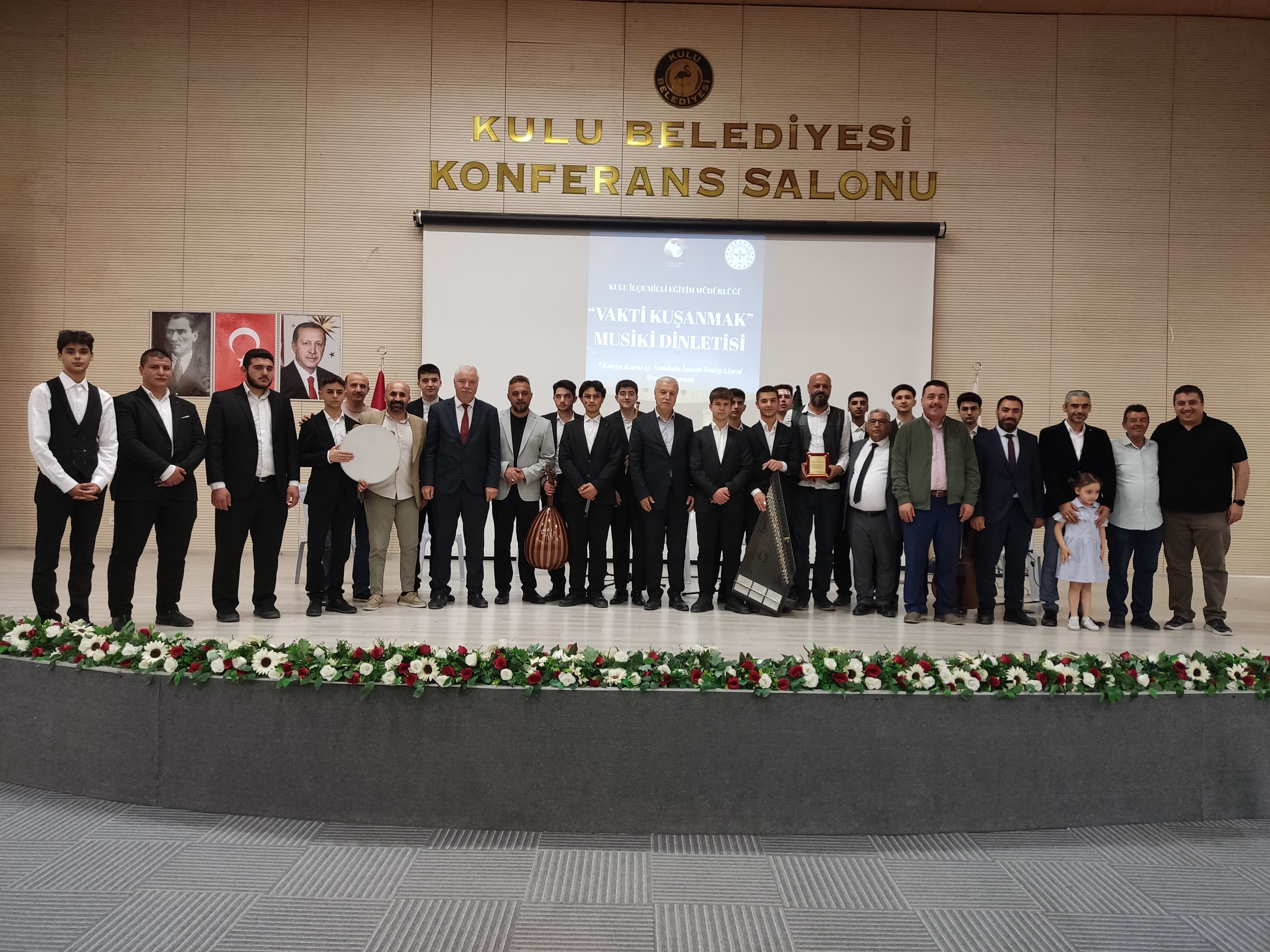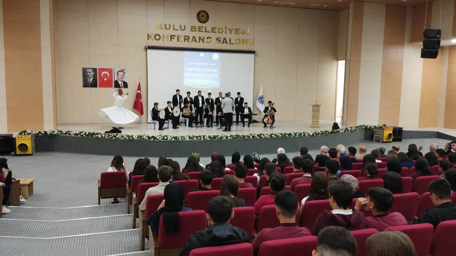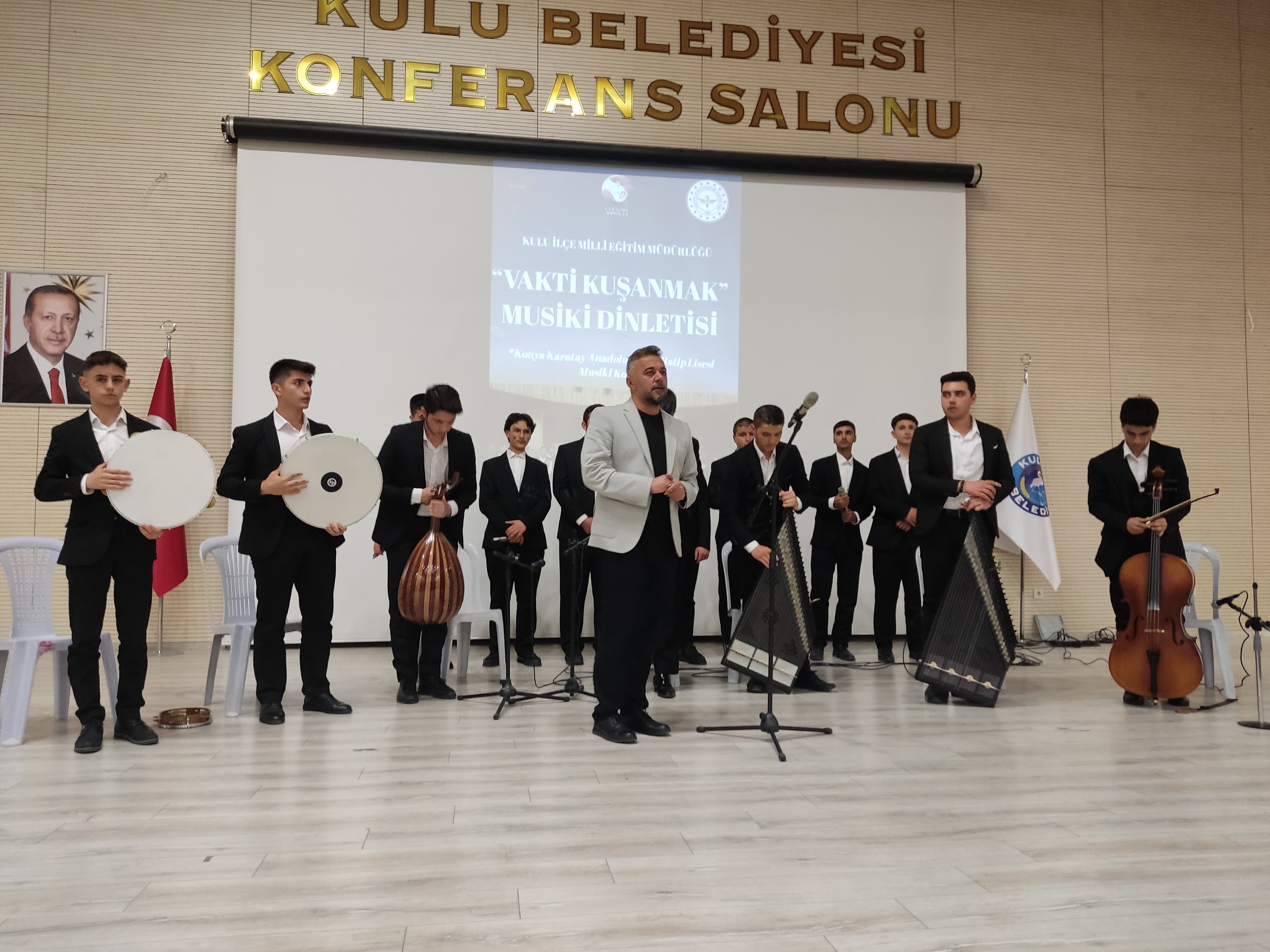 Kulu İlçe Millî Eğitim Müdürlüğü, Millî Eğitim Bakanlığı Din Öğretimi Genel Müdürlüğü tarafından, “Din ve ahlak eğitim ve öğretimini güçlendirecek politika ve stratejilerin geliştirilmesi için gerekli çalışmaları yapmak” görev ve sorumluluğu doğrultusunda yürütülen "Vakti Kuşanmak Etkinlikleri" kapsamında Musiki Dinletisi programı gerçekleştirildi.