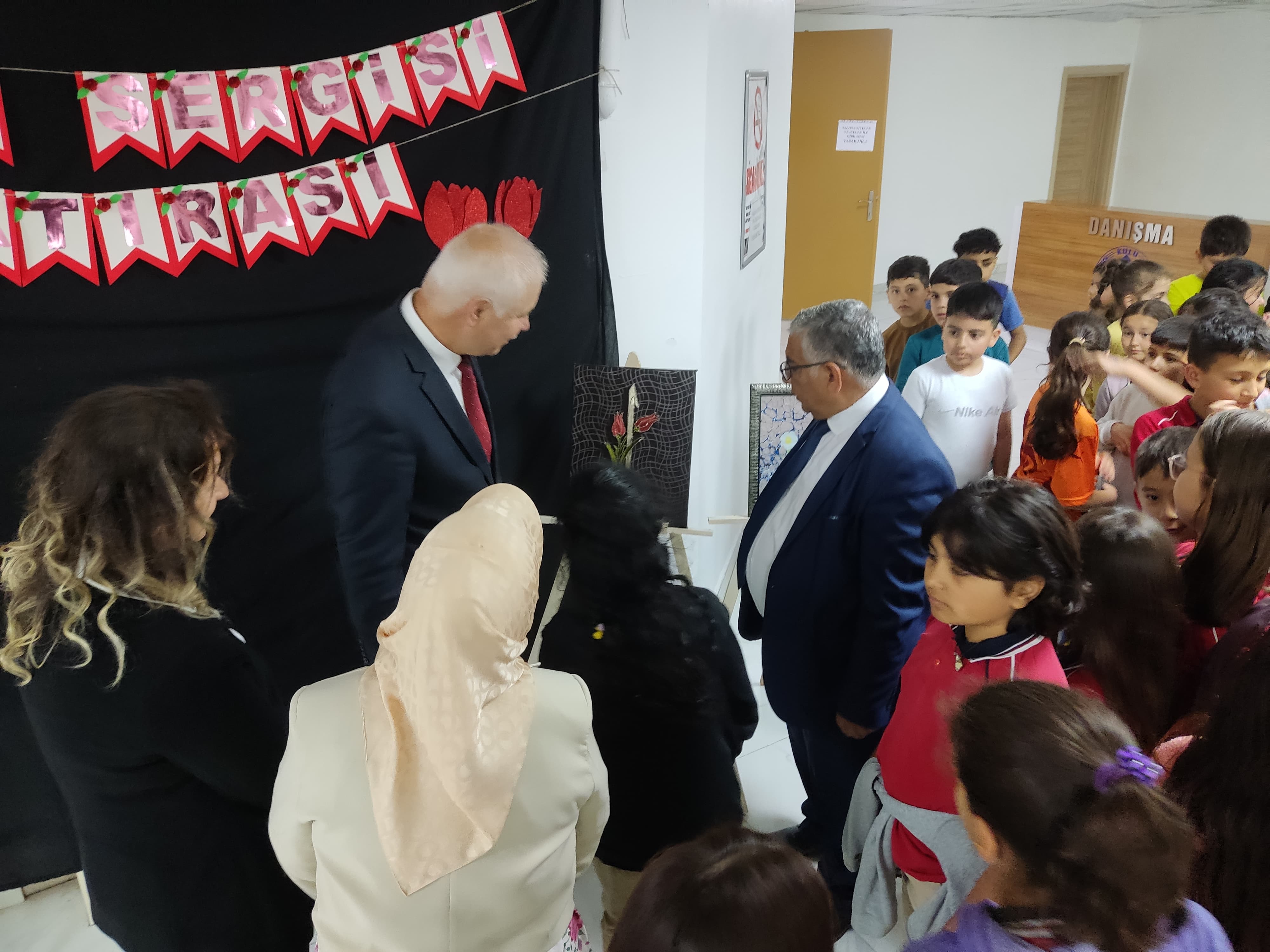 İlçe Milli Eğitim Müdürü Bakırtaş ve beraberindekiler serginin kurdelesini keserek, eserleri ilgiyle inceledi.