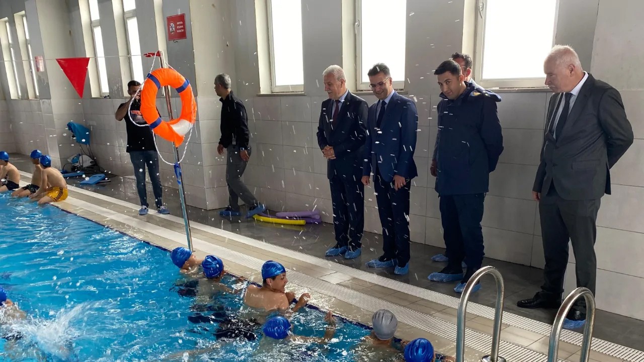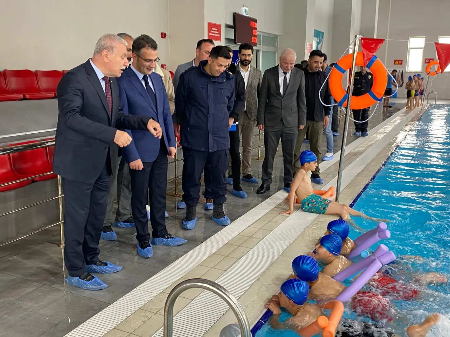 İlçedeki yarı olimpik havuzunda öğretici ve öğrencilerle bir araya gelen Kaymakam Canpolat, sohbet ederek başarılar diledi.