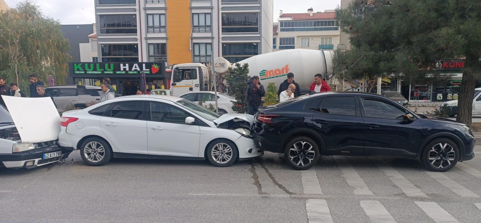 Konya'nın Kulu ilçesinde 3 otomobilin karıştığı zincirleme trafik kazası meydana geldi.