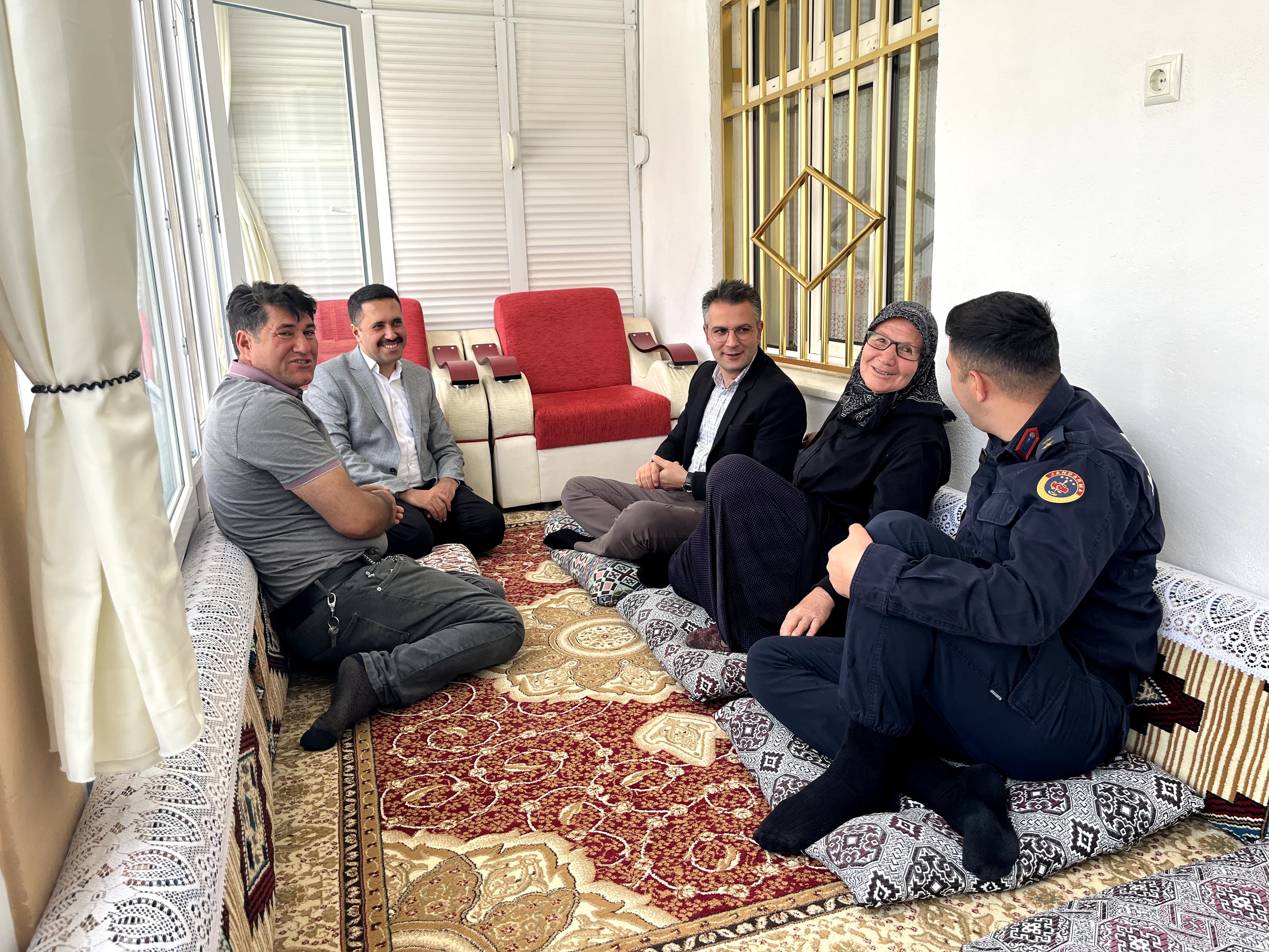 Kaymakam Canpolat'a ziyarette, İlçe Jandarma Komutanı Metehan Osman Hasdemir, Sosyal Yardımlaşma ve Dayanışma Vakfı Müdürü Enes Dinler ve Mahalle Muhtarı Osman Şahin'de eşlik etti.