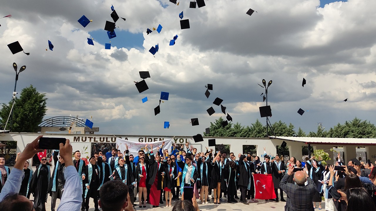 Diplomalarını alan öğrenciler, törende hep birlikte keplerini havaya atarak mezun olmanın mutluluğunu yaşadı.Mezuniyet programı sonunda mezuniyet pastası kesildi. Daha sonra öğrenciler müzik eşliğinde eğlenerek, arkadaş, aile ve öğretim görevlileri ile birlikte mezuniyet anılarını fotoğraflayarak ölümsüzleştirdi.Törenin sonunda öğrenciler yemekte buluştu.(Veli Şengül)
