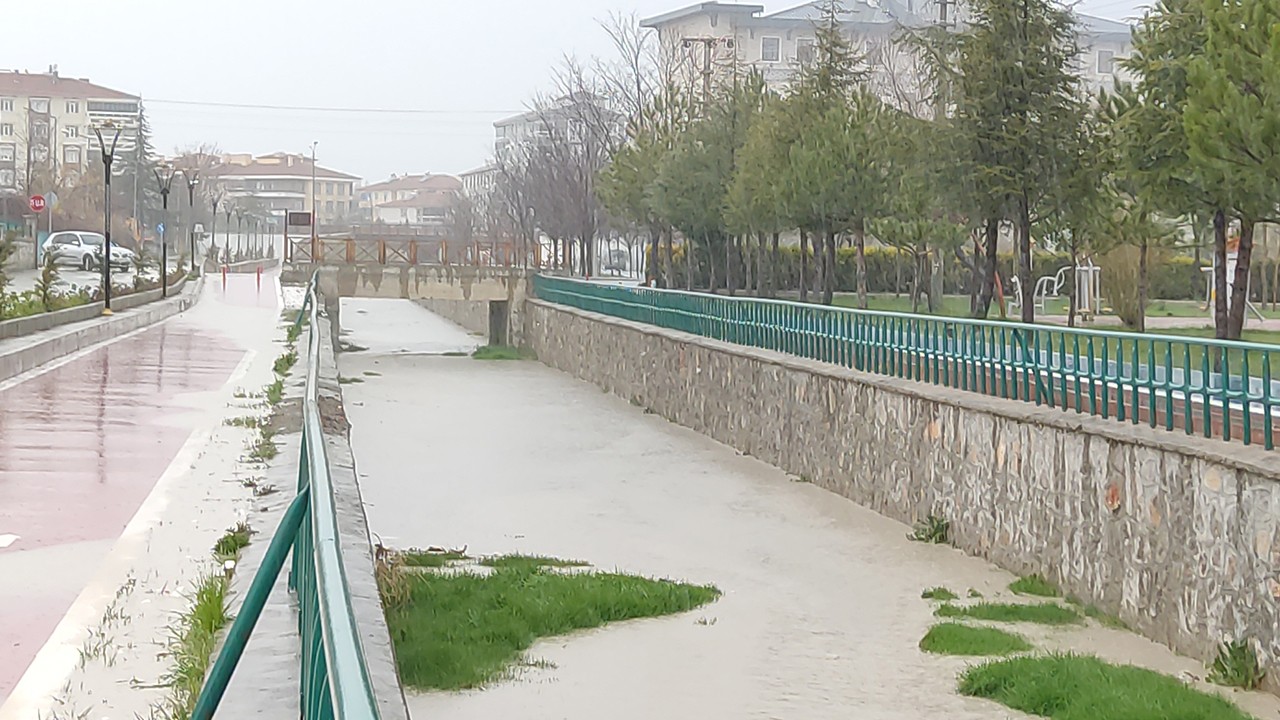 Kulu ilçesinde sağanak yağmur etkili oldu. İlçe merkezinden geçen derenin debisi yükseldi.