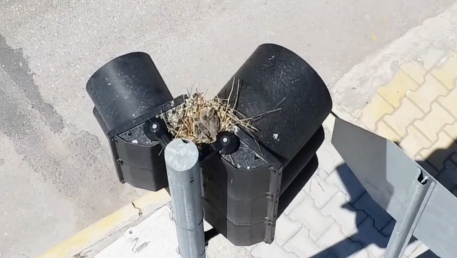 Konya-Aksaray karayolu üzerinde bulunan Sultanhanı ilçe kavşağındaki trafik ışığı, kumrulara yuva oldu.