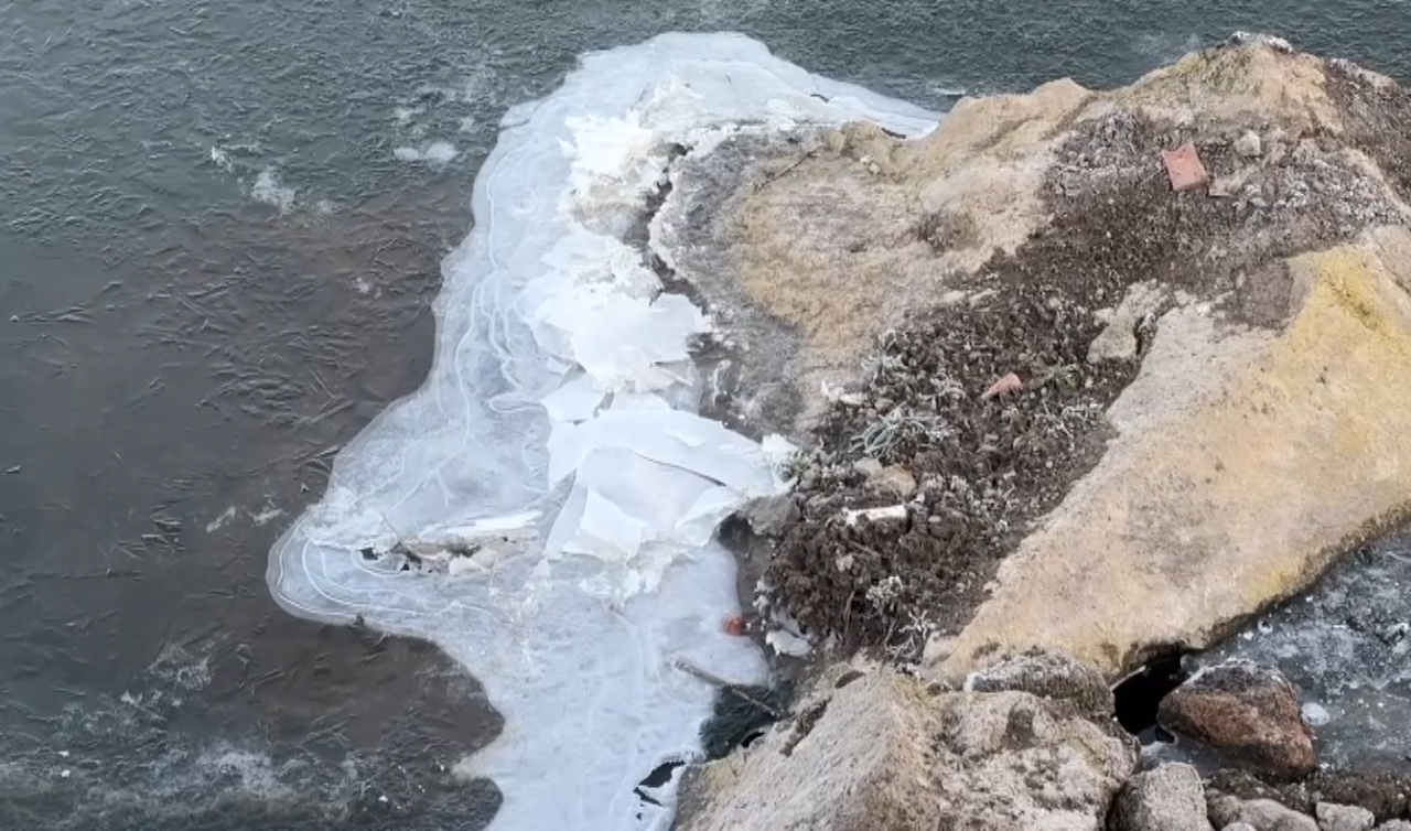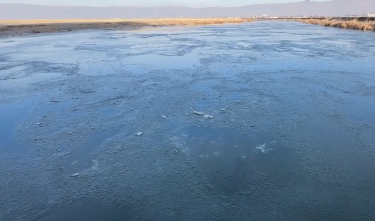 Ardahan'da soğuk hava nedeniyle Kura Nehri'nin yüzeyinin bir bölümü buz tutmaya başladı.