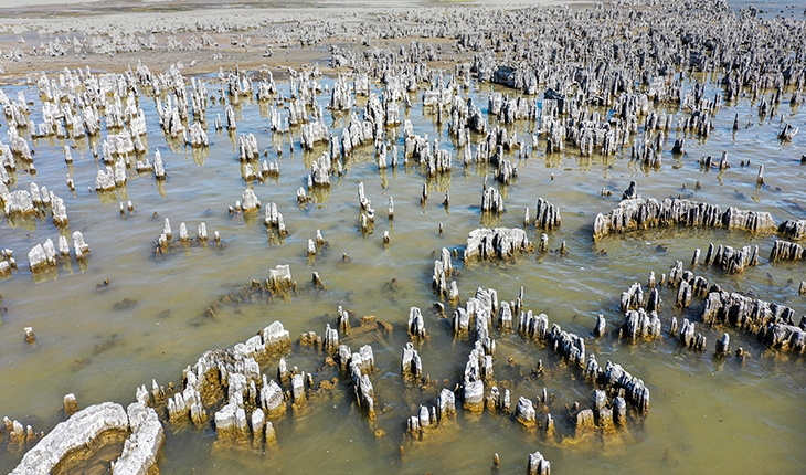 Yağışların azalması ve hızlı buharlaşma nedeniyle seviyesinde düşüş yaşanan Van Gölü'nde, oluşumu binlerce yıl süren ve "su altı peribacaları" olarak nitelendirilen dikitler (mikrobiyalit) kıyılardaki birçok noktada ortaya çıktı.