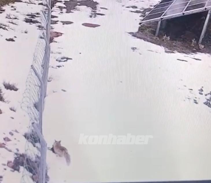 Kulu ilçesine bağlı Doğutepe Mahallesi'nde ilginç bir olay yaşandı. Mahalle yakınlarında bulunan güneş enerji santrali alanında bir tilkinin ağzında avıyla gezdiğini fark eden Serhat Aktaş isimli güvenlik görevlisi, güvenlik kameralarını izlemeye başladı.