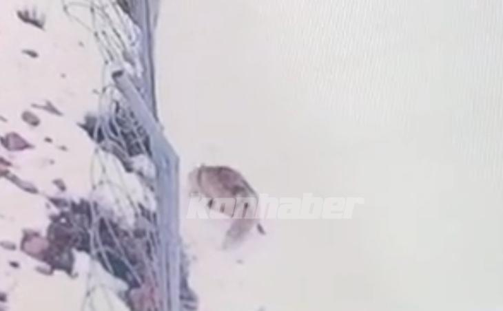 Konya'nın Kulu ilçesinde bir tilki avladığı tavuğu karla kaplı olan yere sakladı. O anlar güvenlik kamerasına anbean yansıdı.