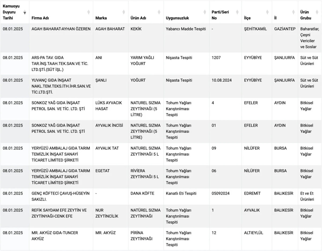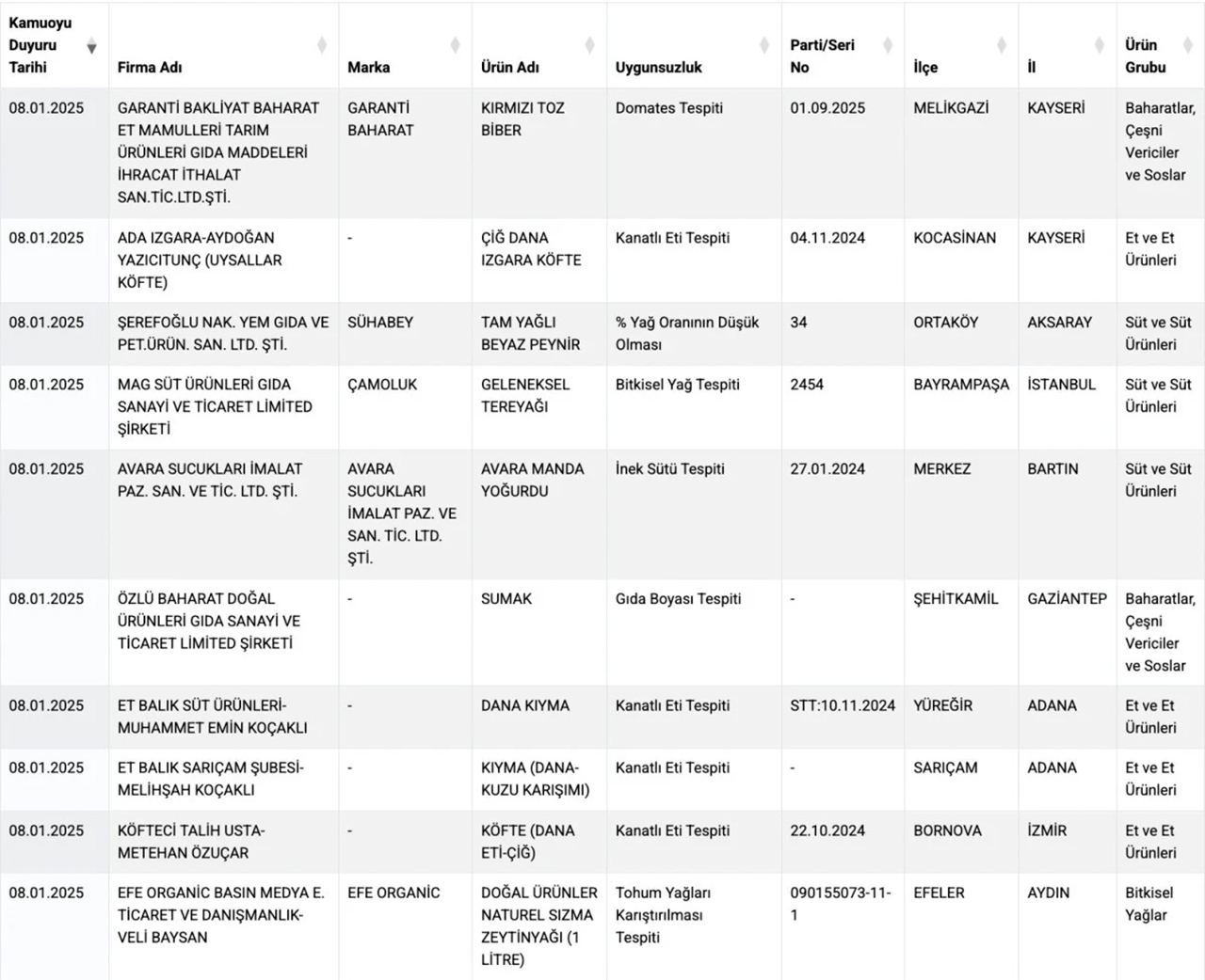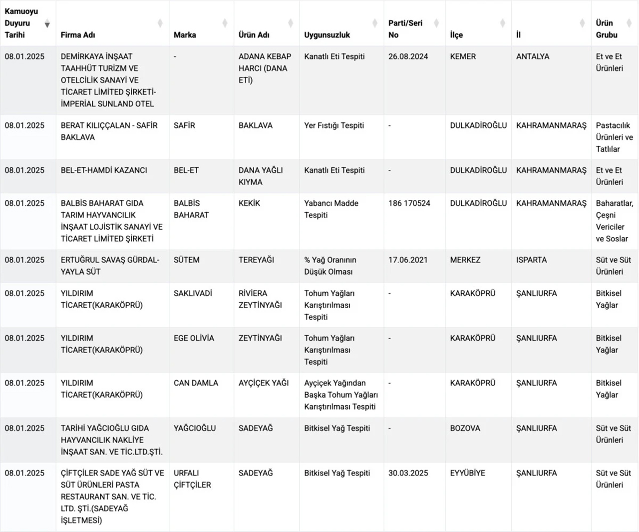 Tarım ve Orman Bakanlığı'nın açıkladığı "Taklit veya Tağşiş Yapılan Gıdalar" listesine 31 sakıncalı ürün daha eklendi. Böylece listedeki taklit ve tağşiş yapılmış ürünlerin sayısı 880'e çıktı. Bu kez listeden kırmızı toz biberde domates ve baklavada yer fıstığı tespit edildi.