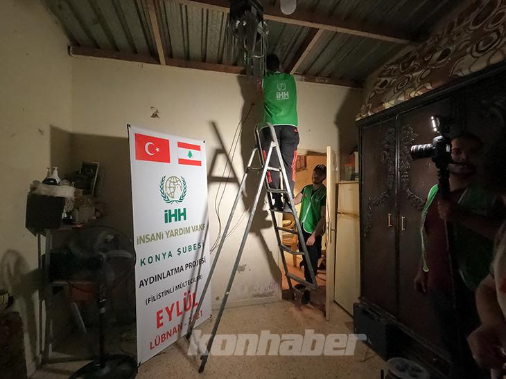 Lübnan'da uzun yıllar mülteci kamplarında yaşayan Filistinli aileler, Konyalı hayırseverlerin bağışıyla evlerine kurulan bataryalı sistemle karanlıktan kurtuluyor.