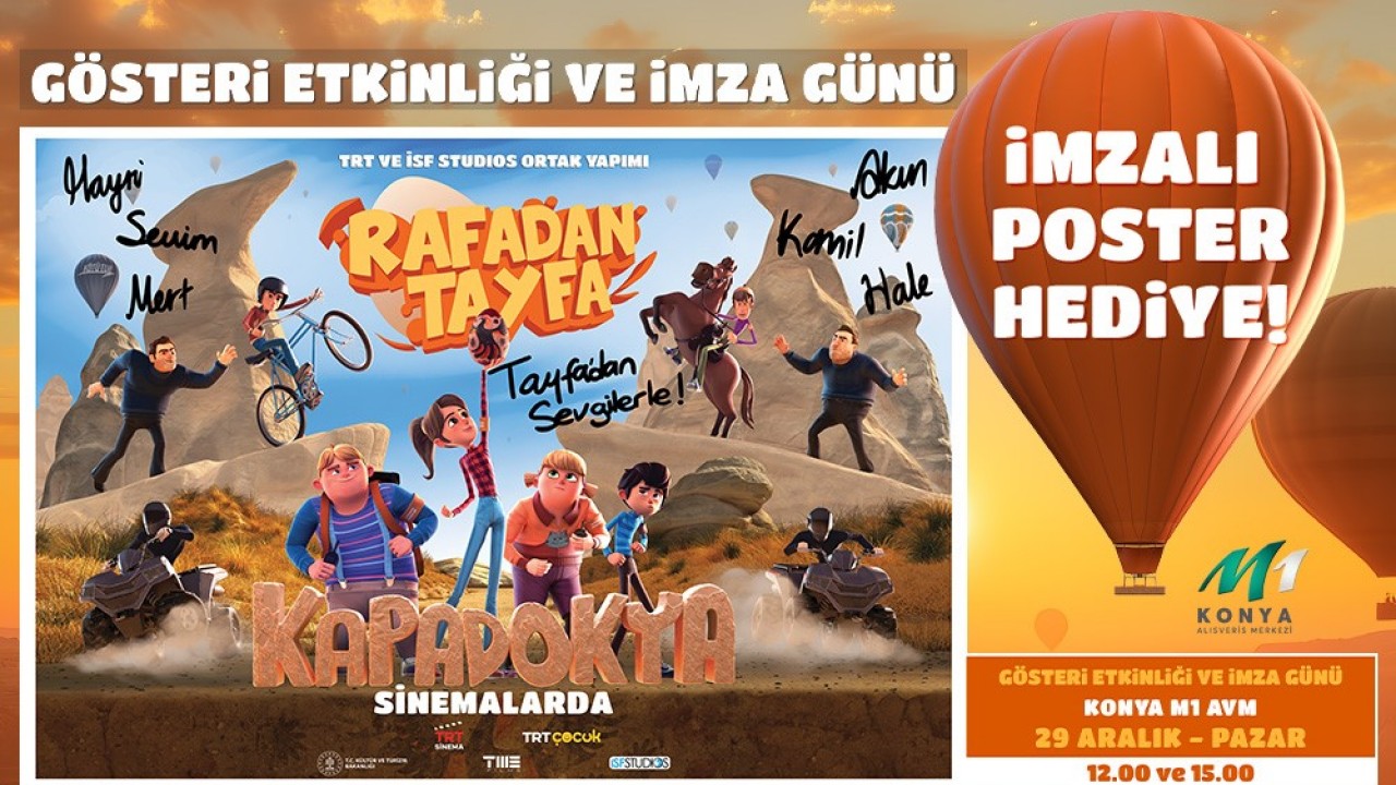 M1 Konya Alışveriş Merkezi, ailece keyifli vakit geçirilebilecek etkinlikleriyle Konya'nın vazgeçilmez adresi olmaya devam ediyor. Rafadan Tayfa Kapadokya filmi, gösteri ve imza günüyle 29 Aralık'ta hayranlarını M1 Konya'da ağırlayacak.