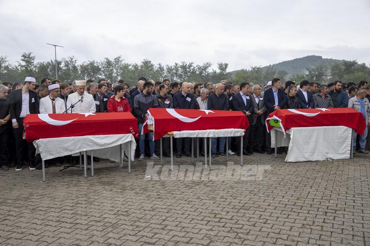 Bulut, Akgül ve Yıldırım'ın cenazeleri, hastane morgundan alınarak Ahatlar köyündeki Amasra Çok Programlı Anadolu Lisesi'nin bahçesine getirildi.