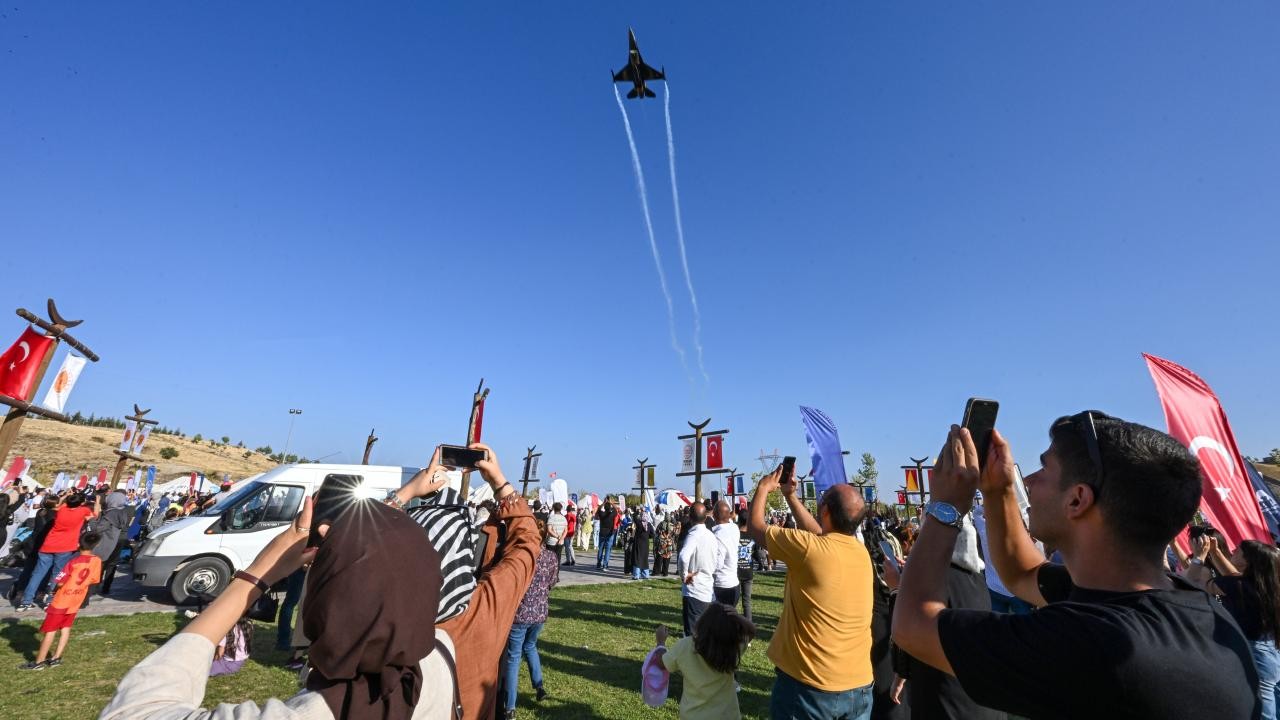 At yarışlarını ve Jandarma Çelik Kanatlar Uçuş Gösterisi'ni izleyerek eğlenceli vakit geçiren vatandaşlar, gösteri anlarını cep telefonlarıyla kaydetti.