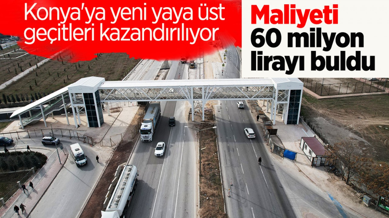 Konya Büyükşehir Belediyesi, Kerkük Caddesi’nde eski yaya üst geçidinin yerinde yeni yaya üst geçit yapımını tamamladı; Şehir Hastanesi önündeki yaya üst geçidini de tamamlamak üzere.
