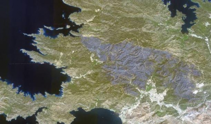 Milli Savunma Bakanlığı'nın sosyal medya hesabından, Marmaris yangınında yanan bölgelerin Göktürk-1 uydusuyla çekilen görüntüsü paylaşıldı.