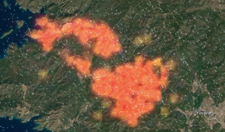 Muğla'nın Marmaris ilçesinde etkili olan orman yangını, NASA'nın canlı uydusu ve 'Zoom Earth' uygulamalarında görüntülendi.