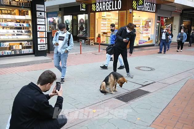 İzmit’in en işlek caddelerinden olan Fethiye Caddesi’ne her gün gelerek mazgallara bakan köpek, hem vatandaşların hem de esnafın ilgi odağı oldu.