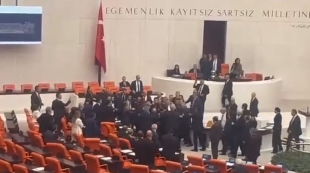 Verilen arada AK Parti milletvekilleri kürsüye yürüyünce arbede yaşandı. CHP milletvekillerinin araya girme çabasına rağmen AK Parti ve DEM Partililer arasında yumruklu kavga yaşandı.