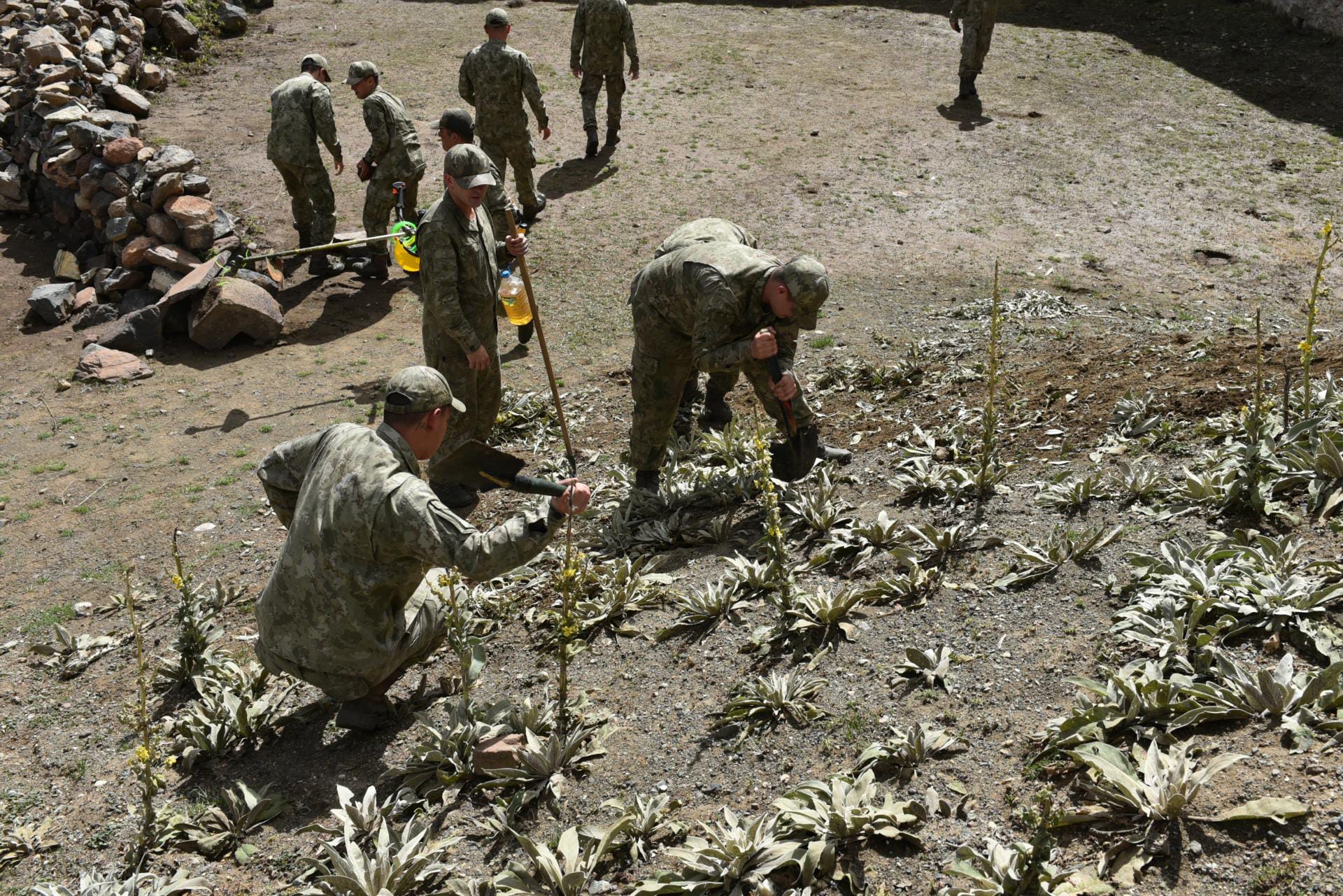 Tabyalara çıkan askerler, otlarını biçip çevre düzenlemesi yaptıkları tabyalardaki çöpleri de topladı.