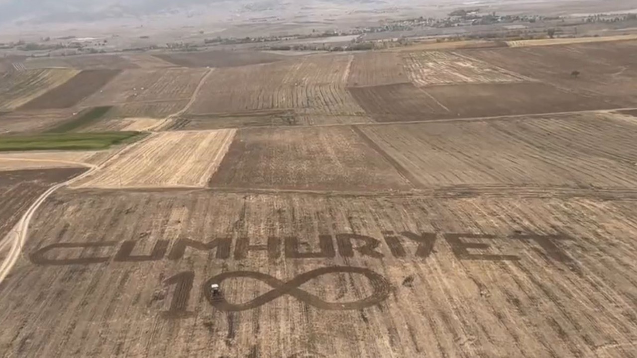 Milli Savunma Bakanlığı, tarlasına 'Cumhuriyet' yazarak Cumhuriyet'in 100'üncü yılını kutlayan çiftçinin videosunu sosyal medya hesabından paylaştı. Açıklamada, "Merzifon'daki 5'inci Ana Jet Üs Komutanlığı personelimiz, helikopterle arama-kurtarma görevinden dönerken eşsiz bir manzarayla karşılaşmış. Amasyalı bir çiftçimizin traktörle Cumhuriyetimizin 100'üncü yılını tarlasına yazdığını görünce o anları görüntülemiş. Cumhuriyet sevgisini tarlasına yazacak kadar devlet ve millet sevdalısı çiftçimizi, yürekten selamlıyoruz" denildi.