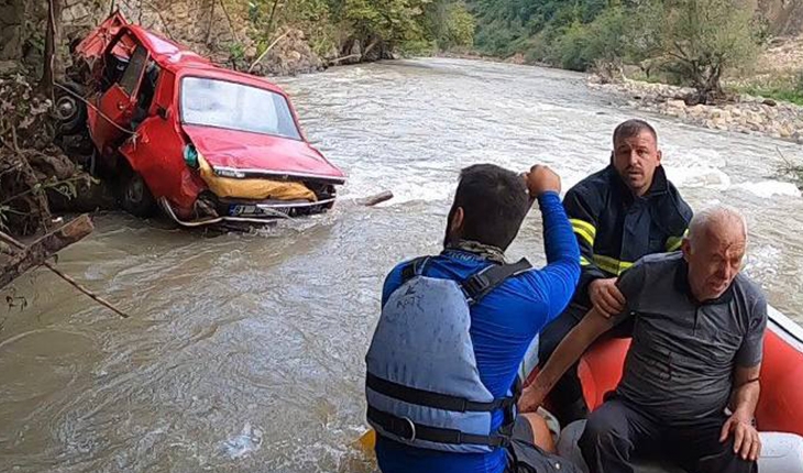 Düzce'nin Cumayeri ilçesinde Melen Çayı'na devrilen otomobilin sürücüsü yaralandı.