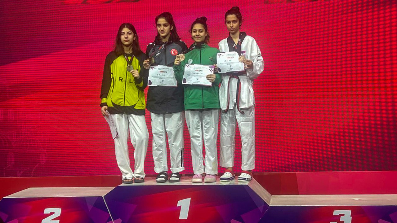 Meram Belediyesporlu Melek Yağmur Ergün, 8 Şubat’ta Antalya’da başlayan 12. Uluslararası Türkiye Açık Taekwondo Turnuvası’nda önemli bir başarıya imza attı. Melek Yağmur Ergün, 60 ülkeden yaklaşık 3000 sporcunun mücadele ettiği prestijli turnuvada Yıldız Bayanlar kategorisi 55 kg’da birbirinden zorlu rakiplerini geçerek bronz madalyanın sahibi oldu. Uluslararası arenada ülkemizi ve kulübünü başarıyla temsil eden genç sporcu, gösterdiği üstün performansla büyük alkış aldı.