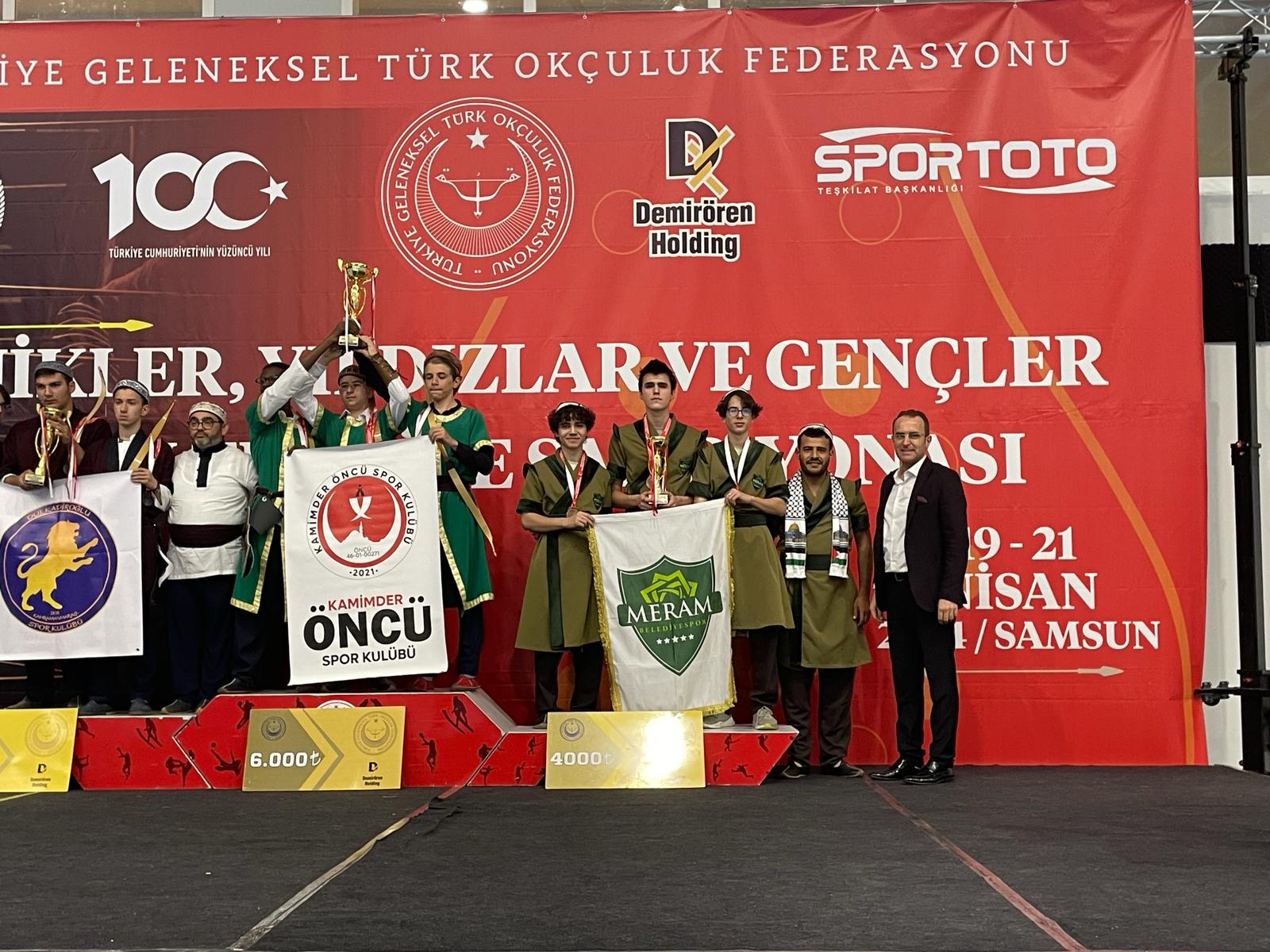 Meram Belediyespor’un kemankeşleri, Türkiye Geleneksel Türk Okçuluk Federasyonu tarafından Samsun’da gerçekleştirilen Türkiye Şampiyonası’nda adeta destan yazdı. 41 il ve 94 kulüpten 928 sporcunun katıldığı turnuvada Meram Belediyespor okçuları, 3 Türkiye Şampiyonluğu ile birer ikincilik ve üçüncülük kazandılar. Okçular ayrıca kırdıkları üç Türkiye rekoru ile de turnuvaya damga vurdular.