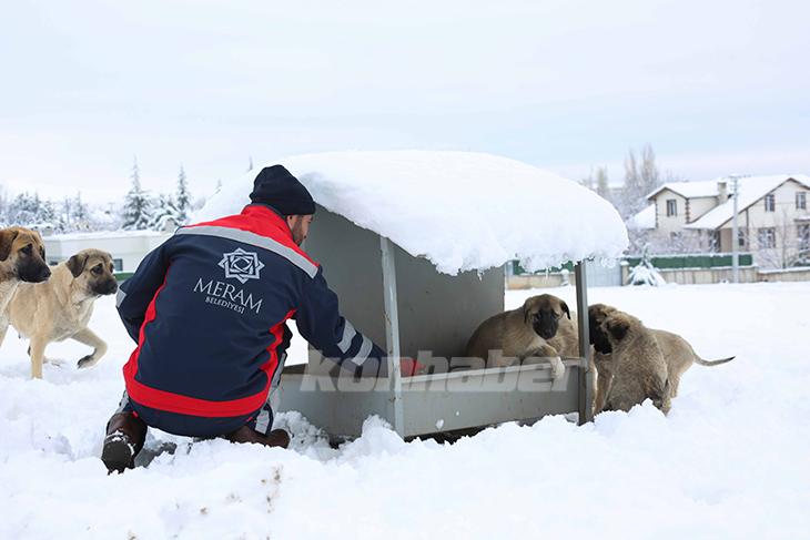 Meram’da yoğun kar yağışıyla birlikte sokak hayvanları unutulmadı. Meram Belediyesi Veteriner İşleri Müdürlüğü ekipleri, yiyecek bulmakta zorlanan sokak hayvanları için ilçenin farklı noktalarında gerçekleştirdiği mama takviyesini sıklaştırdı.