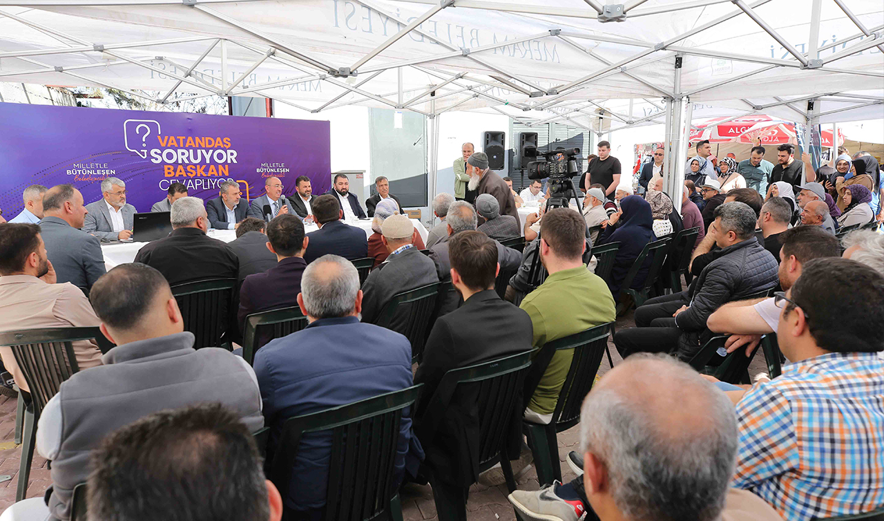 Sorulara geçmeden önce son altı yıl boyunca bu iki mahalleye yapılan yatırımlar hakkında bilgi veren Meram Belediye Başkanı Mustafa Kavuş, "Bahçeşehir Mahallemize 46,76 kilometre yeni yol açtık. Yaklaşık 60 bin metrekarelik alana sıcak-soğuk asfalt serimi gerçekleştirdik. Sadece altyapıya 178 milyonluk yatırım yaptık," dedi. Mahallede 6 milyon 600 bin TL’lik kamulaştırma gerçekleştirdiklerini ifade eden Başkan Kavuş, 4 milyon 540 bin metrekarelik alanda 18. madde uygulaması yaptıklarını da vurguladı. Bahçeşehir Mahallesine ayrıca 7 park alanı kazandırdıklarını belirten Başkan Kavuş, “Bahçeşehir mahallemizde en fazla şikayet aldığımız konu olan sokak köpekleri meselesine ise ‘Meram Sahipsiz Hayvan Doğal Yaşam Alanı’ ile çözüm bulduk. Tüm Meram’da olduğu gibi Bahçeşehir mahallemizden de köpeklerin toplanmasıyla mahalle sakinlerimizin güvenliğini önemli ölçüde teminat altına aldık.” ifadelerini kullandı.